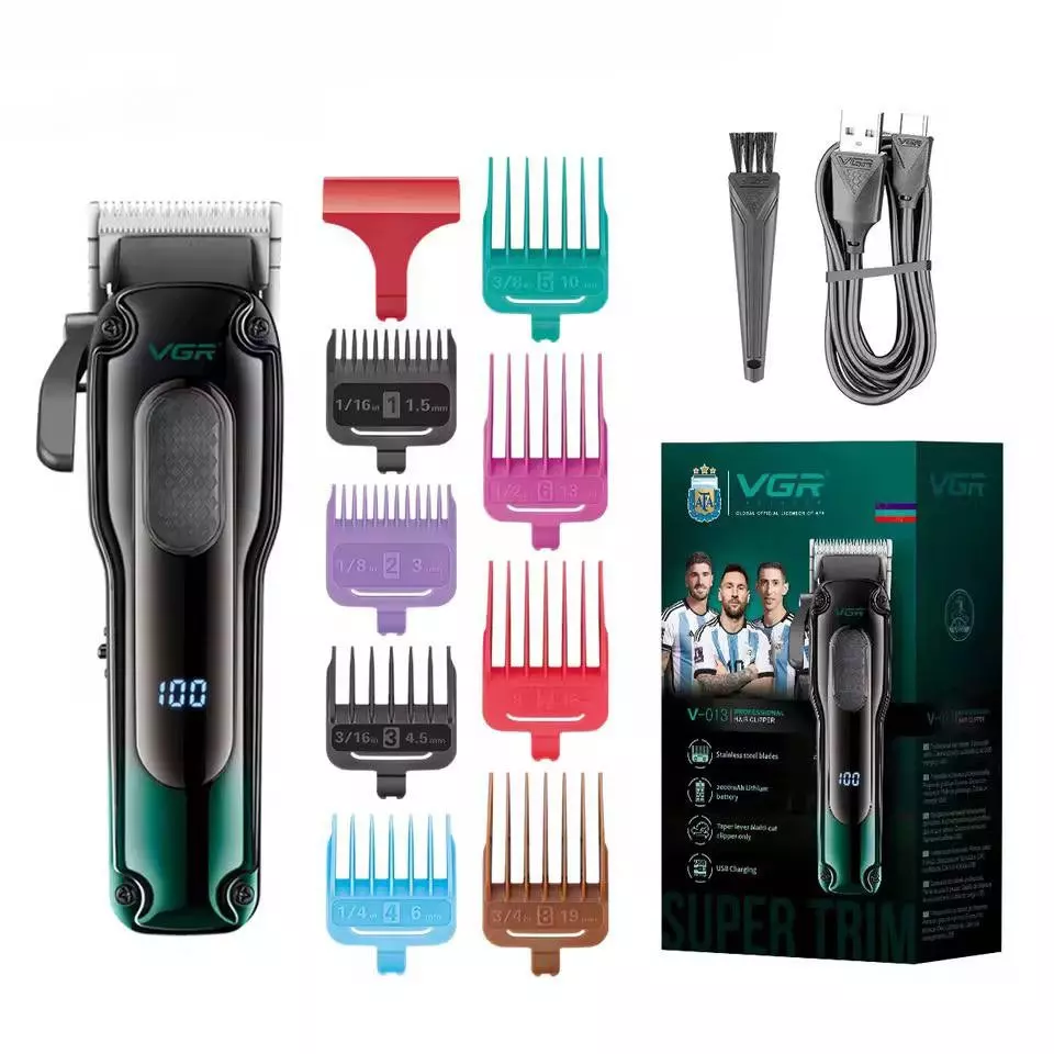 Аккумуляторная машинка для стрижки VGR V-013 с 8 насадками LED (Зеленый)
