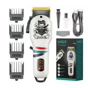 Аккумуляторная машинка для стрижки VGR V-699 с 4 насадками LED (Белый)