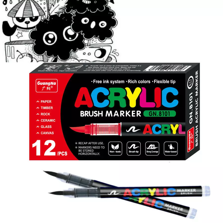 Акриловые маркеры GuangNa Brush GN-8101 с мягкой кисточкой — это идеальный инструмент для творчества, который подойдет как детям, так и взрослым. Благодаря мягкому кистевому наконечнику (brush tip) маркеры позволяют легко создавать яркие и детализированные работы. Подходят для рисования, скетчинга, декора, DIY-проектов и росписи на различных поверхностях. Маркеры быстро высыхают, не смываются водой и абсолютно безопасны в использовании — не содержат токсичных веществ и не имеют резкого запаха.