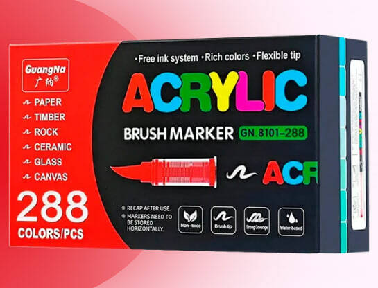 Акриловые маркеры GuangNa Brush GN-8101 с мягкой кисточкой — это идеальный инструмент для творчества, который подойдет как детям, так и взрослым. Благодаря мягкому кистевому наконечнику (brush tip) маркеры позволяют легко создавать яркие и детализированные работы. Подходят для рисования, скетчинга, декора, DIY-проектов и росписи на различных поверхностях. Маркеры быстро высыхают, не смываются водой и абсолютно безопасны в использовании — не содержат токсичных веществ и не имеют резкого запаха.