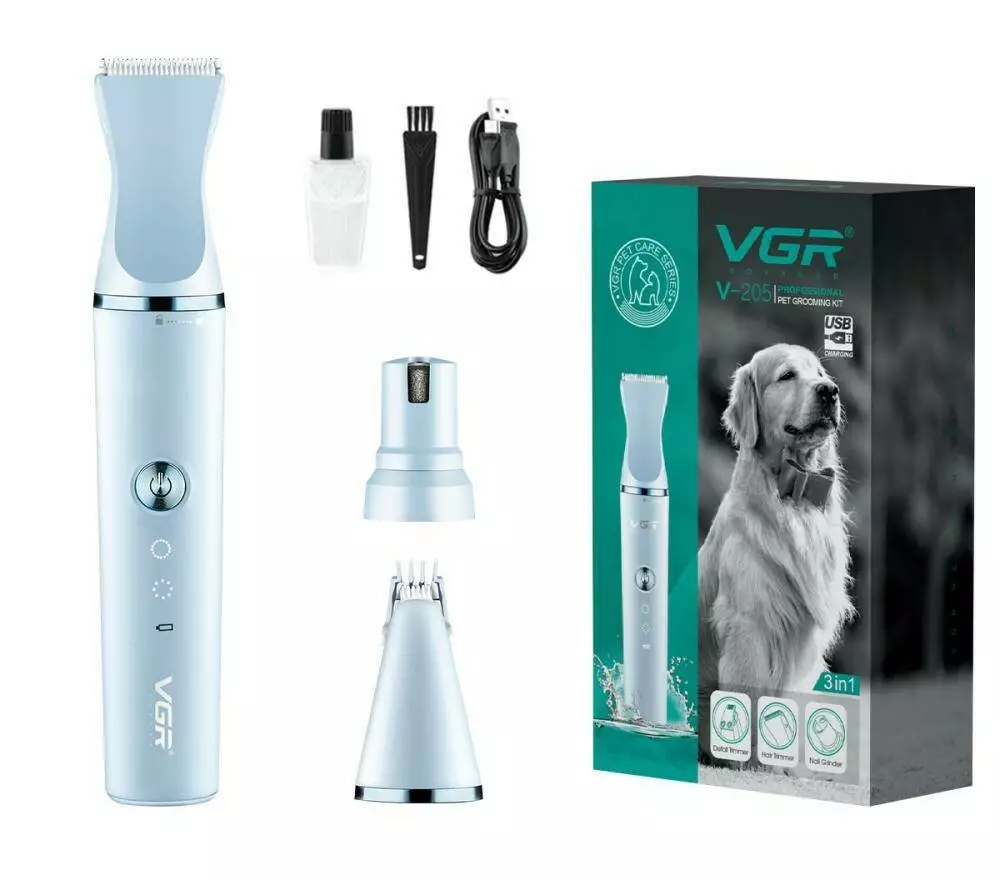 Акумуляторна машинка для стрижки тварин 3в1 VGR V-205 з 3 насадками – універсальний триммер 3 в 1, призначений для догляду за шерстю домашніх тварин. Компактна та легка модель ідеально підходить для стрижки собак та котів, забезпечуючи комфорт як для власника, так і для тварини.