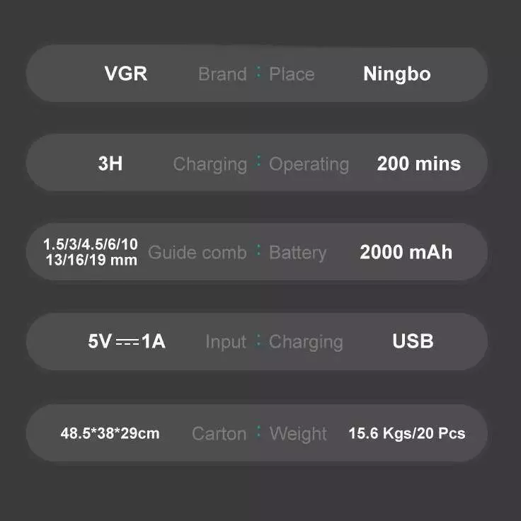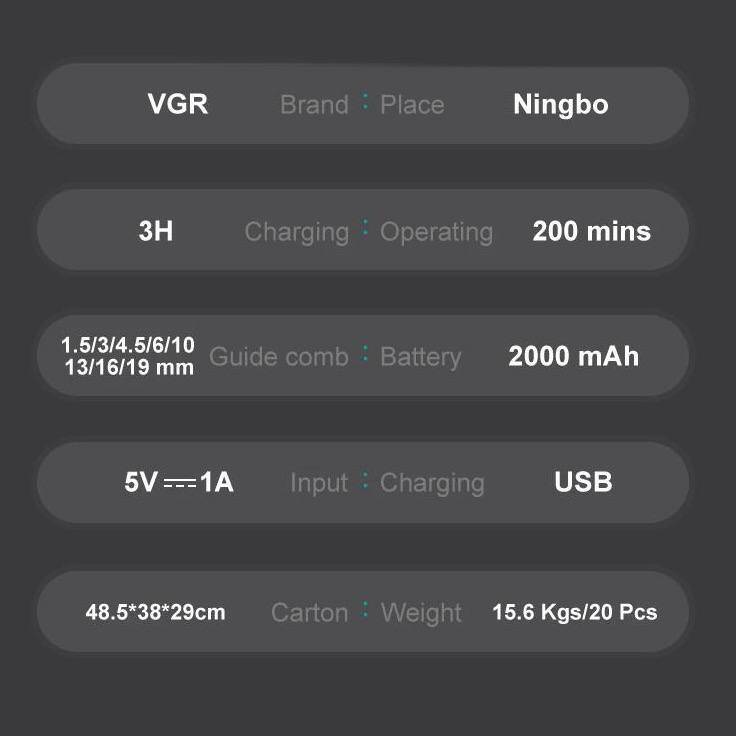 Акумуляторна машинка для стрижки VGR V-013 — функціональний та стильний інструмент для догляду за волоссям вдома або в салоні, що поєднує ергономічний дизайн, зручне керування та надійну роботу. Потужний мотор забезпечує швидку та акуратну стрижку, а LED-дисплей відображає рівень заряду акумулятора та вибрану довжину, забезпечуючи інтуїтивний контроль.