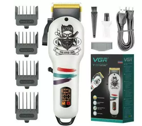 Акумуляторна машинка для стрижки VGR V-699 з 4 насадками LED (Білий)