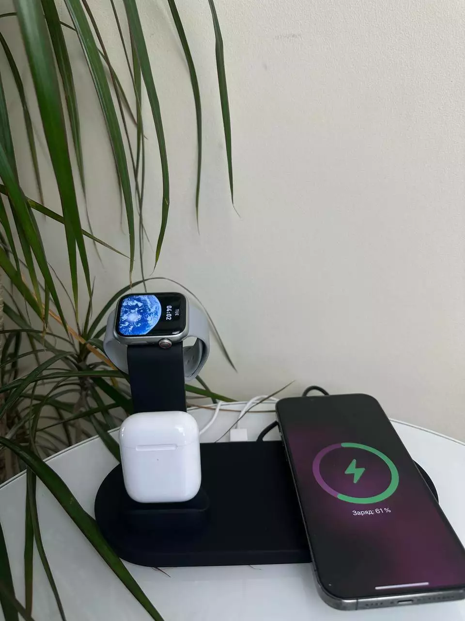 - Данная модель позволит зарядить: Телефон, Pods и Smart Watch