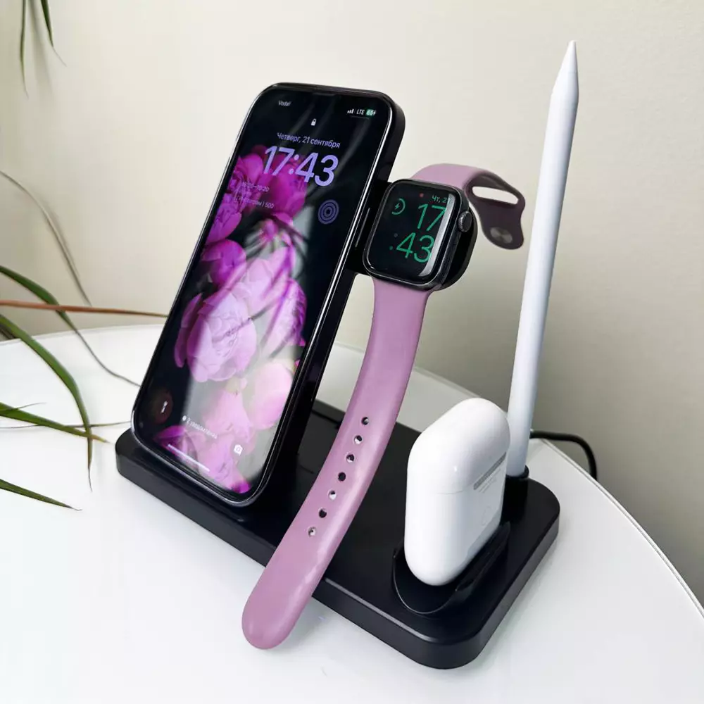 - Данная модель позволит зарядить: Телефон, Pods и Smart Watch, Pencil