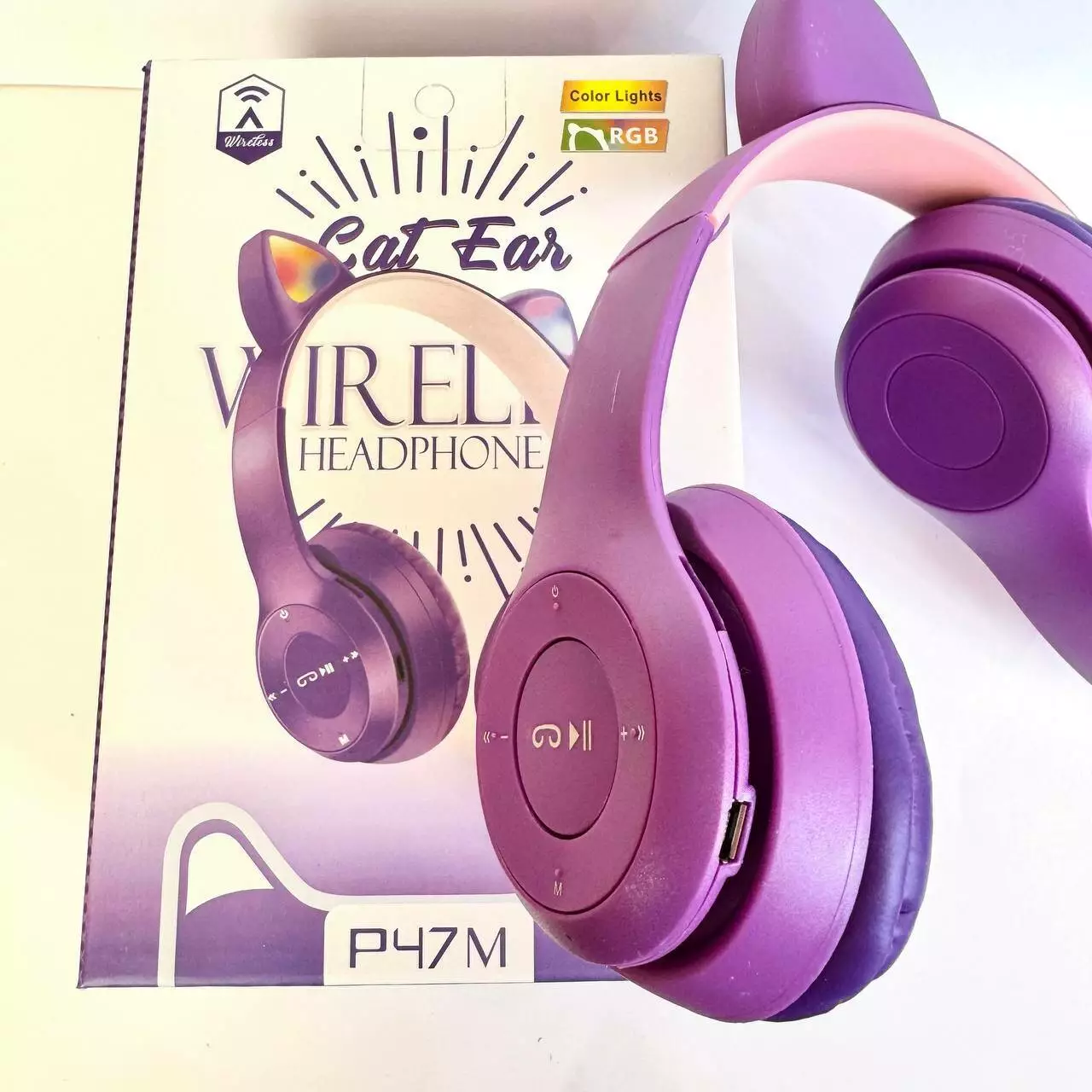 Беспроводные наушники Cat Ear RGB P47M (Фиолетовый)