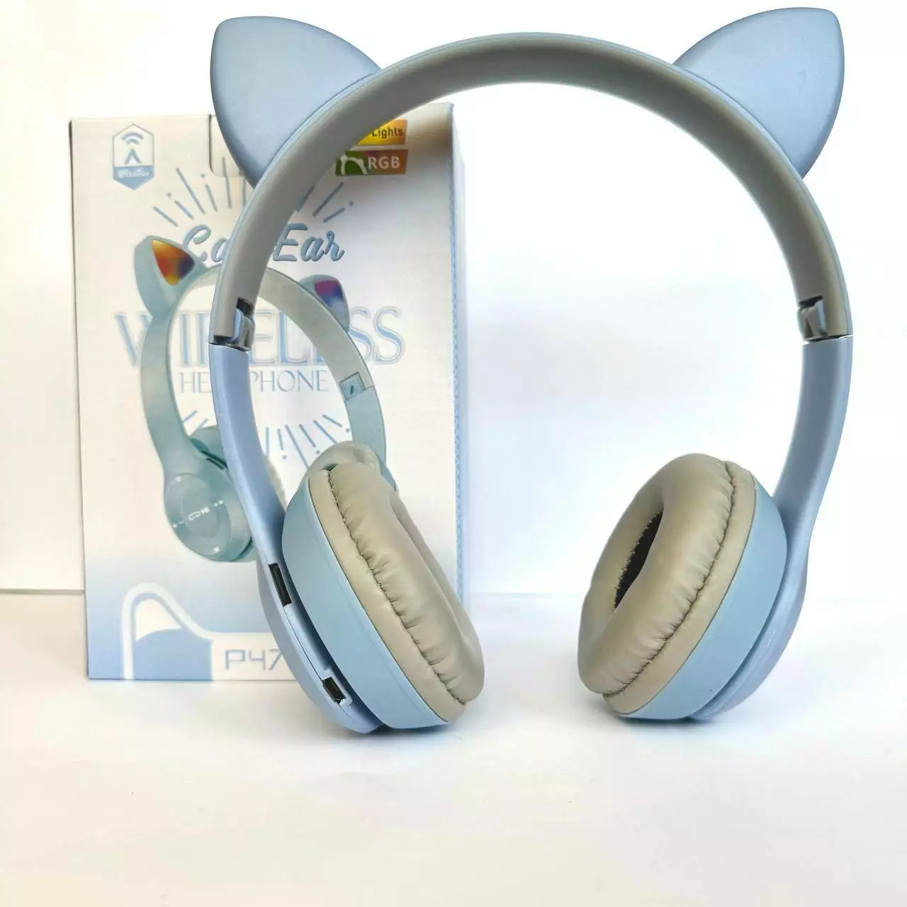 Беспроводные наушники Cat Ear RGB P47M (Голубой)