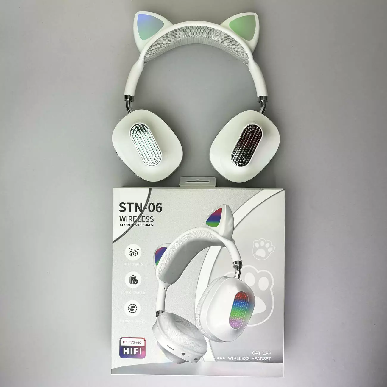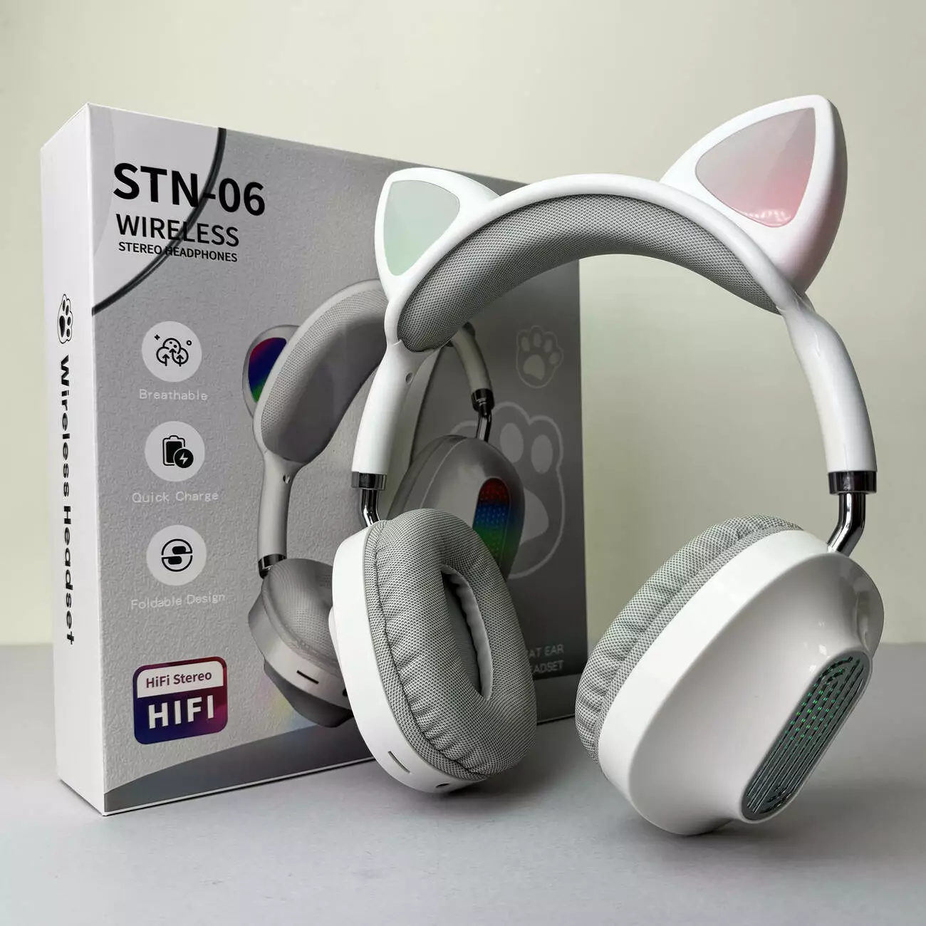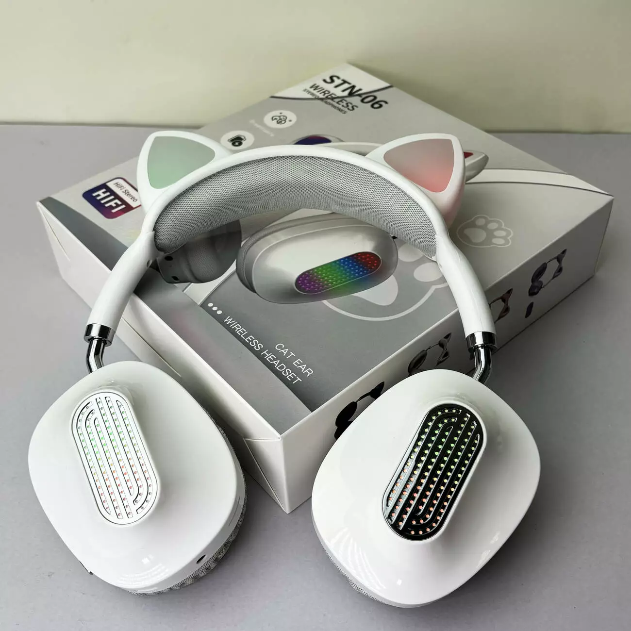 Беспроводные наушники Cat Ear RGB STN06 (Белый)