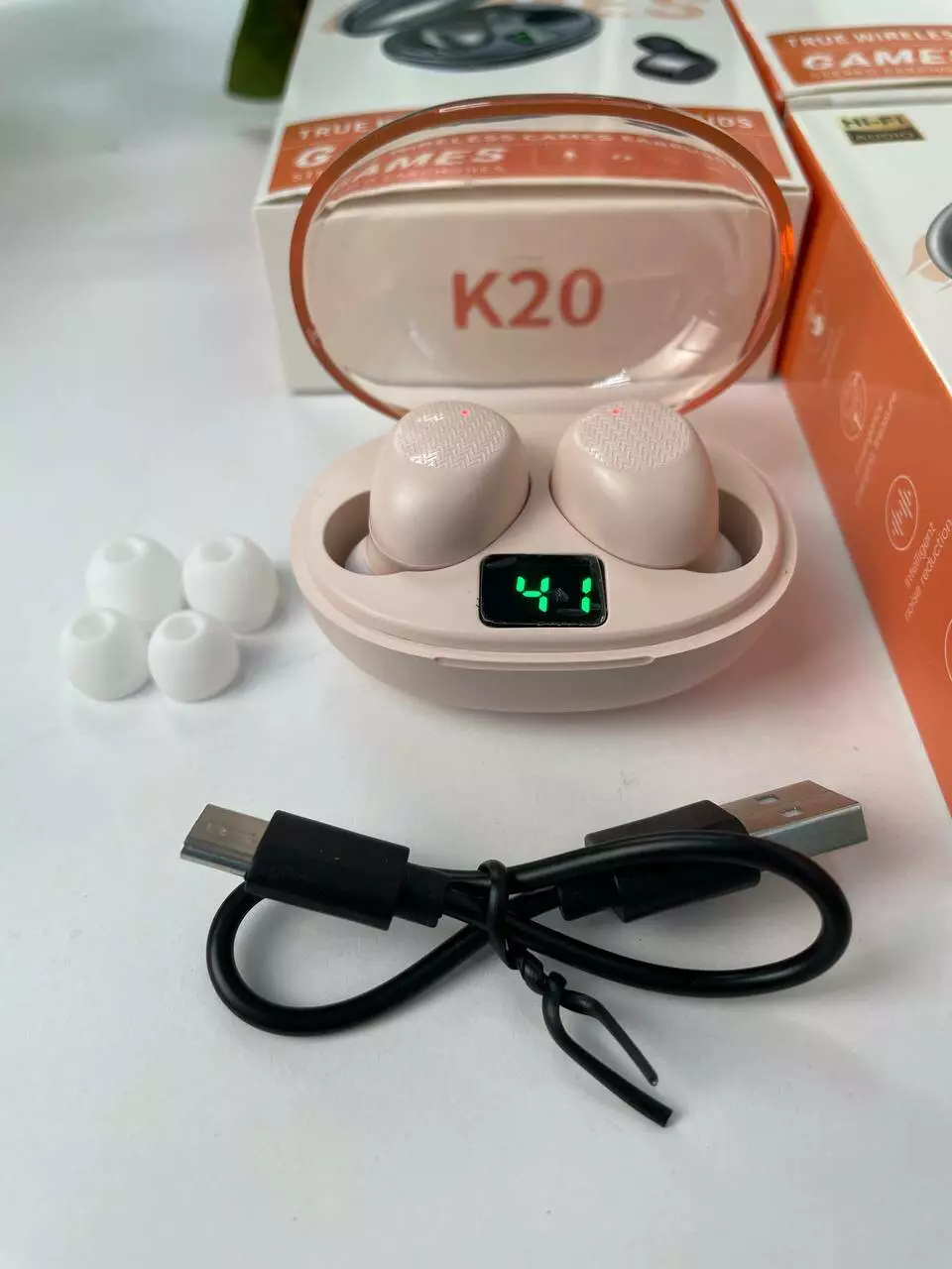 Беспроводные наушники Earbuds К20 - имеют простой и лаконичный дизайн. Небольшие размеры, плавные линии способствуют их стильному внешнему виду и удобному использованию. Силиконовые амбушюры плотно фиксируются в ушной раковине, не выпадают и не вызывают дискомфорта при длительном использовании. Кроме того, на вкладках есть многофункциональные сенсорные кнопки. С помощью них можно управлять гарнитурой, не доставая из кармана телефон. Останавливайте музыку, отвечайте на вызовы без поиска телефона. Кейс Power Bank, благодаря которому вы в любой момент сможете подзарядить свои наушники.