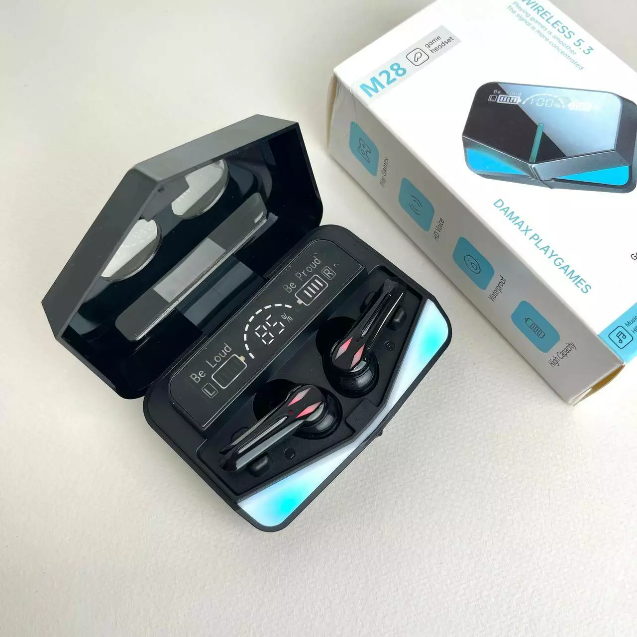 Беспроводные наушники M28 - это современное аудиоустройство, сочетающее высокое качество звука, удобство использования и стильный дизайн. Они оснащены новейшей версией Bluetooth 5.3, что обеспечивает быстрое и стабильное соединение с вашим устройством. Кейс имеет цифровой дисплей, показывающий уровень заряда, а также яркую RGB-подсветку, которая добавляет стильного вида и помогает легко находить наушники в темноте. Футляр с аккумулятором на 2000mAh не только заряжает наушники, но и может использоваться как Power Bank для других устройств через дополнительный USB-разъем. Идеальное решение для тех, кто всегда хочет быть на связи и наслаждаться музыкой в течение длительного времени. Наушники работают без подзарядки 4-6 часов как в режиме прослушивания музыки, так и во время телефонных разговоров. Беспроводные наушники M28 станут отличным выбором для тех, кто ценит качественный звук, функциональность и современный дизайн.