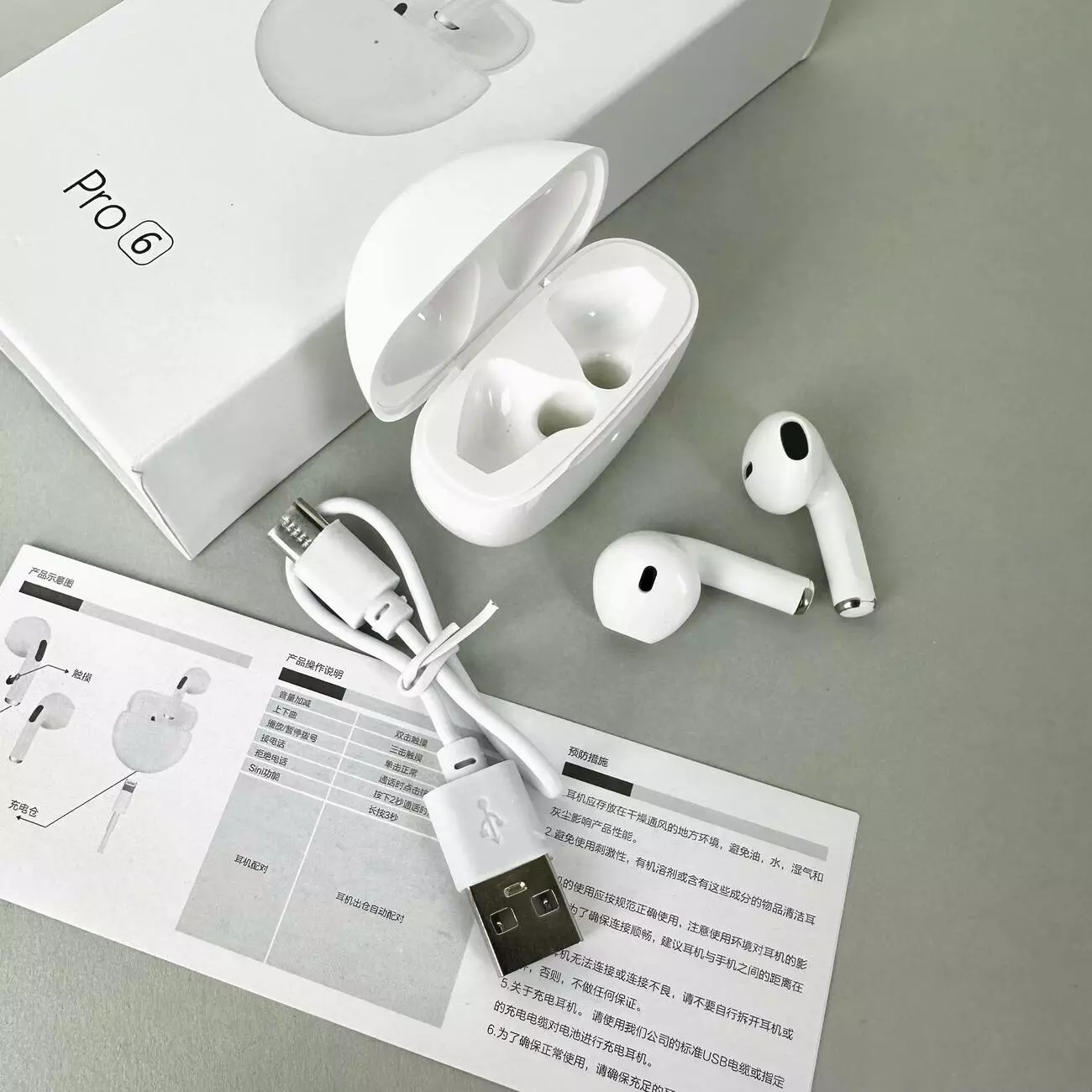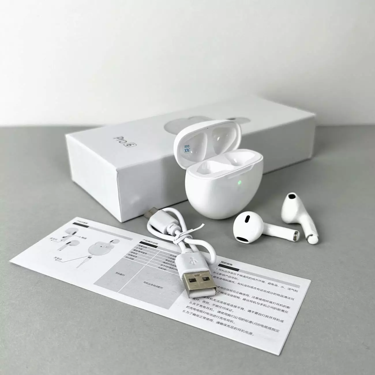 Беспроводные наушники Pro 6 series, EarBuds (Белый)
