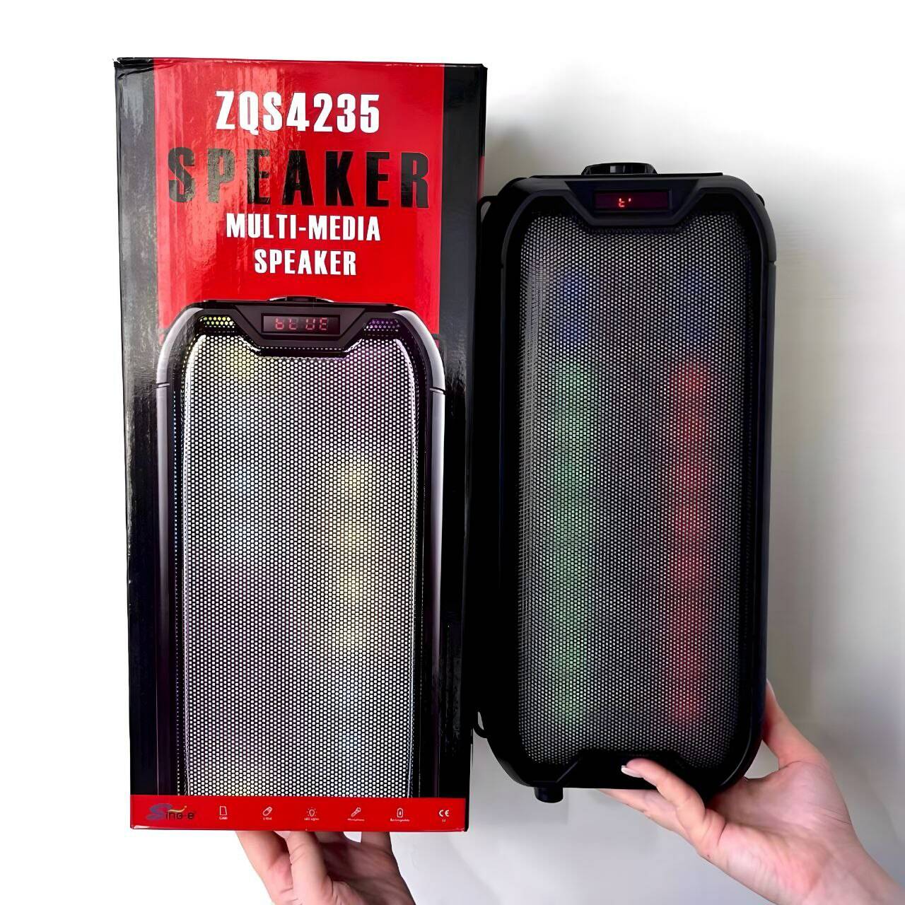 Бездротова колонка Sing-e ZQS 4235 RGB (Чорний) – це стильна та потужна акустична система, яка подарує вам насичене звучання у будь-якому місці. Завдяки бездротовому підключенню через Bluetooth колонка легко синхронізується зі смартфоном, планшетом або ноутбуком. Модель ZQS 4235 оснащена яскравим RGB-підсвічуванням, що створює атмосферу справжньої вечірки. Вбудований акумулятор забезпечує тривалий час роботи, а зручна ручка дозволяє легко транспортувати колонку. Ідеальний вибір для домашнього використання, відпочинку на природі чи гучних вечірок з друзями.