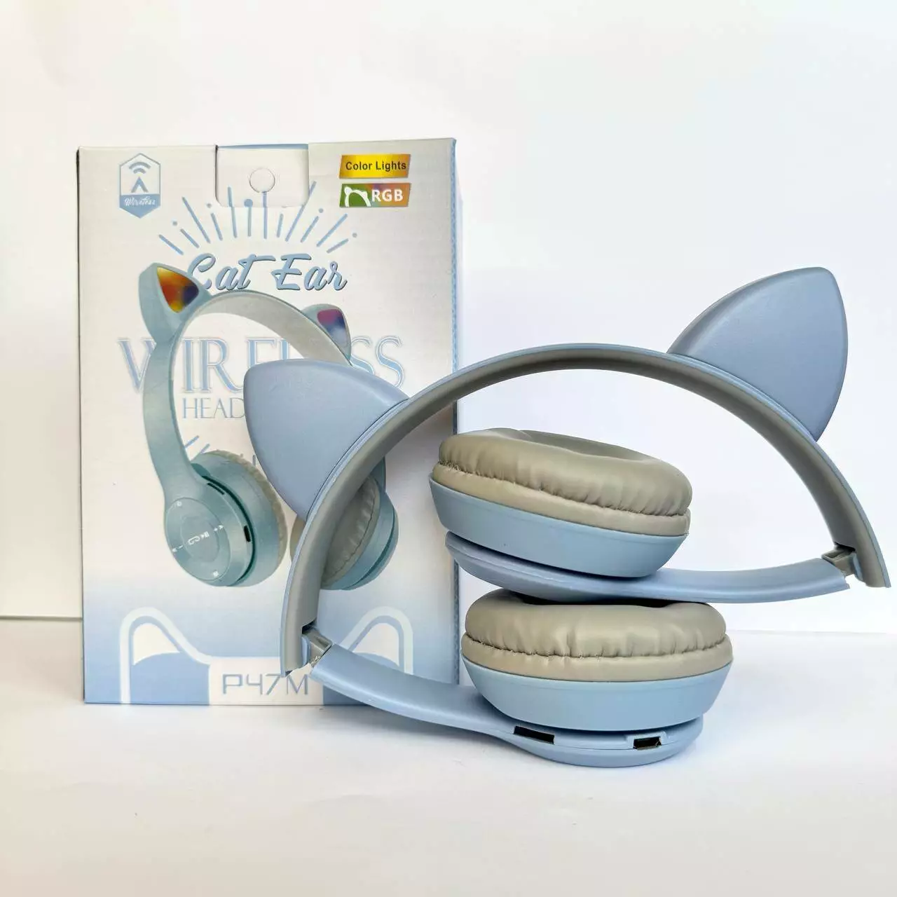 Бездротові навушники Cat Ear RGB P47M (Блакитний)