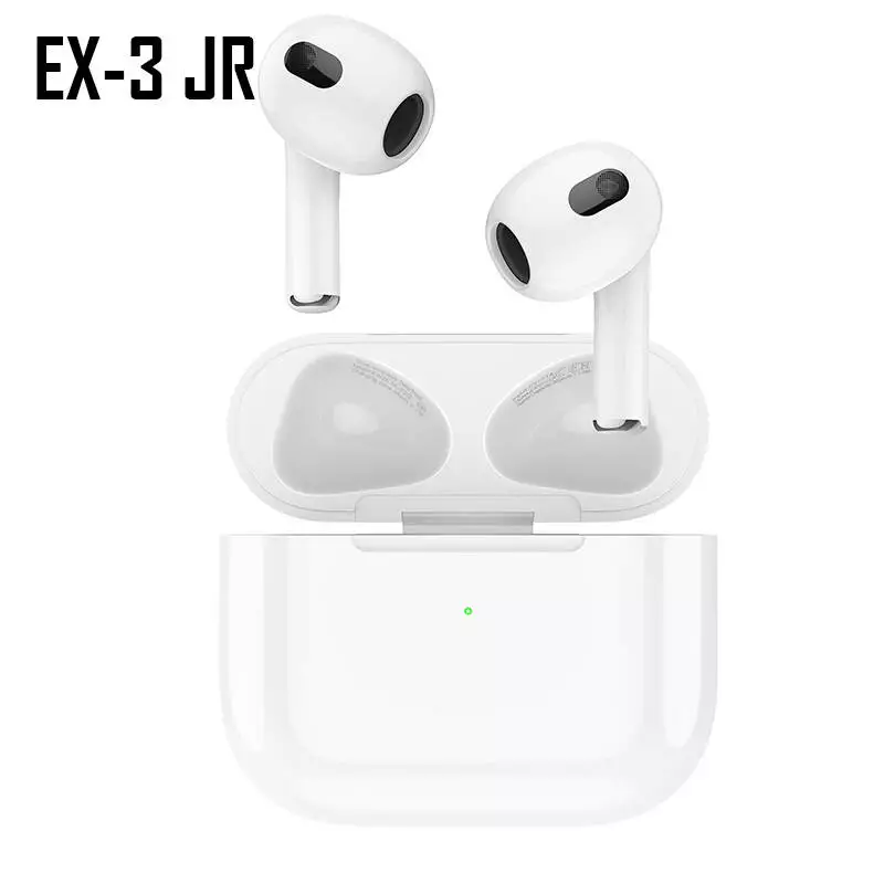 Бездротові навушники EX-3 JR - зручні та стильні навушники нового покоління. Ергономічна форма підходить під більшість вушних раковин і дуже комфортна у посадці. Можна не побоюватися, що навушник раптово випаде під час руху голови, що дає велику перевагу при виборі аксесуару. Підтримка бездротового заряджання кейсу. І звісно відмінне звучання динаміків, ви завжди зможете насолоджуватися якісним прослуховуванням улюбленої музики чи то переглядом фільму, або просто розмовою.