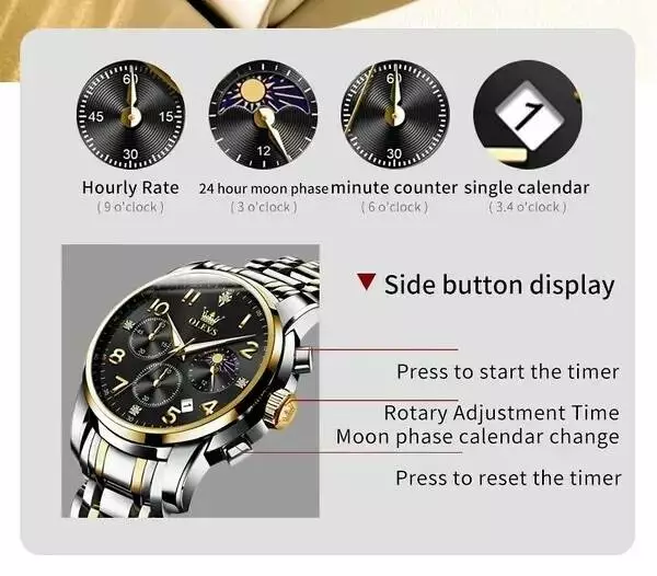 Часы наручные OLEVS 3628 – сочетание классического стиля, современной функциональности и высокой точности. Этот аксессуар прекрасно подходит для делового образа и повседневного ношения. Благодаря японскому кварцевому механизму Miyota обеспечивается стабильный точный ход. Прочный корпус и браслет из нержавеющей стали, стекло с покрытием Hardlex–минерального типа, а также водостойкость 3 ATM – все это делает часы надежными в повседневных условиях.