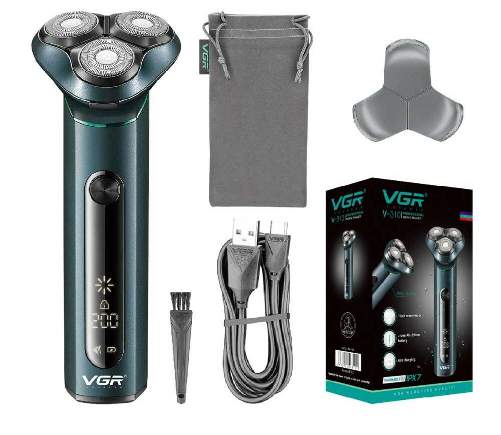 Електробритва роторна VGR V-310 — стильний, потужний та багатофункціональний інструмент для щоденного догляду. Вона оснащена трьома плаваючими роторними лезами з нержавіючої сталі, які забезпечують рівне, комфортне та швидке гоління. Водозахист IPX7 дозволяє використовувати та мити пристрій під душем, а LED-дисплей ясно показує рівень заряду та індикатор чистки. Ємний літієвий акумулятор забезпечує до 200 хвилин автономної роботи після повної зарядки, яка займає приблизно 3 години через USB. Ергономічний і міцний корпус ідеально підходить для дому, подорожей або подарунка.
