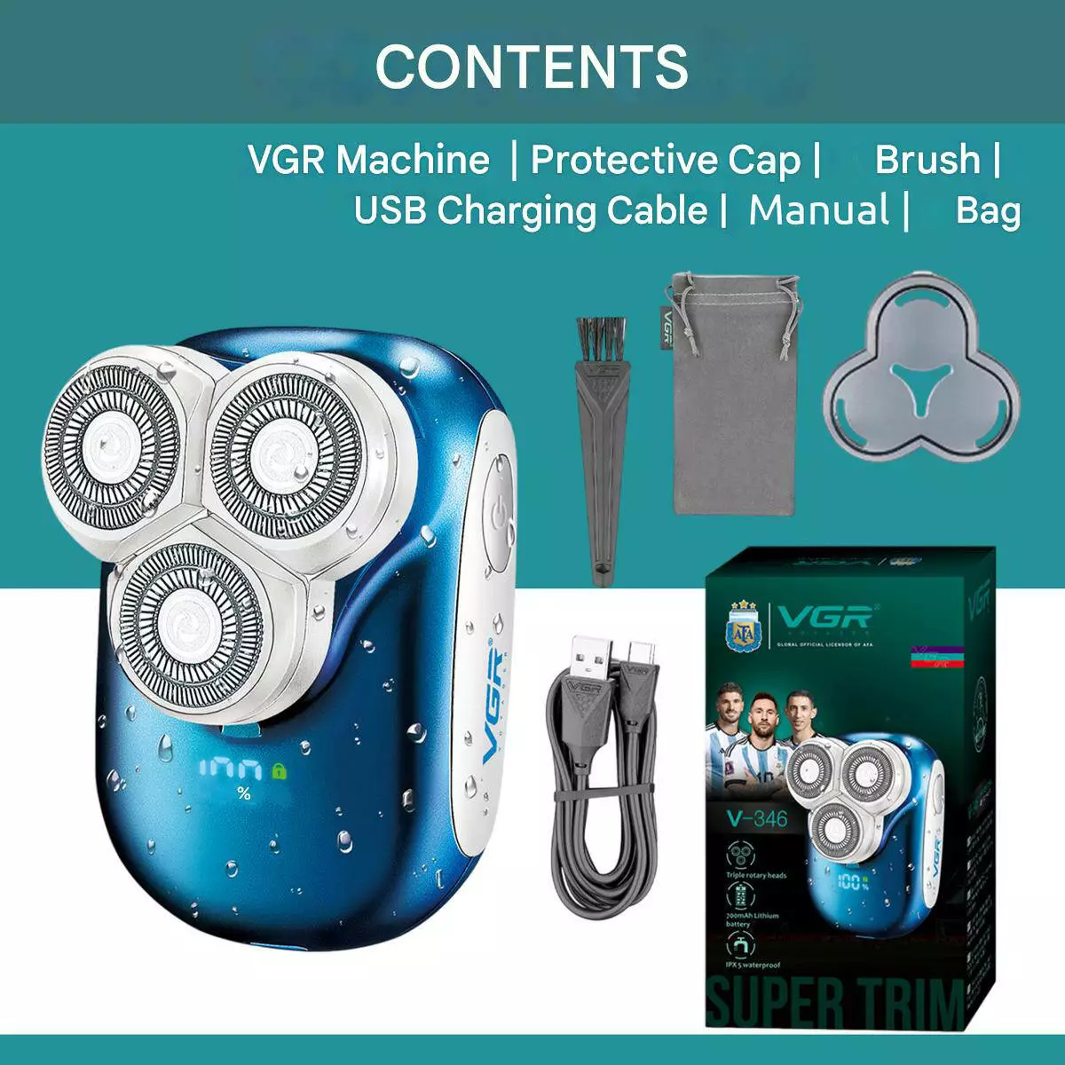 Электробритва роторная VGR V-346 LED (Голубой) – мощная и влагозащищённая роторная бритва для комфортного ежедневного бритья. Две плавающие роторные головки обеспечивают точную и гладкую стрижку щетины, даже на труднодоступных участках лица. Корпус в ярком синем цвете сочетается с LED-дисплеем, показывающим уровень заряда. Уровень защиты IPX5 позволяет безопасно использовать прибор в условиях влажности и легко промывать рабочие части. Надёжный аккумулятор даёт до 80 минут работы после полной зарядки, а подпитывается устройство через USB, что делает использование на ходу особенно удобным.