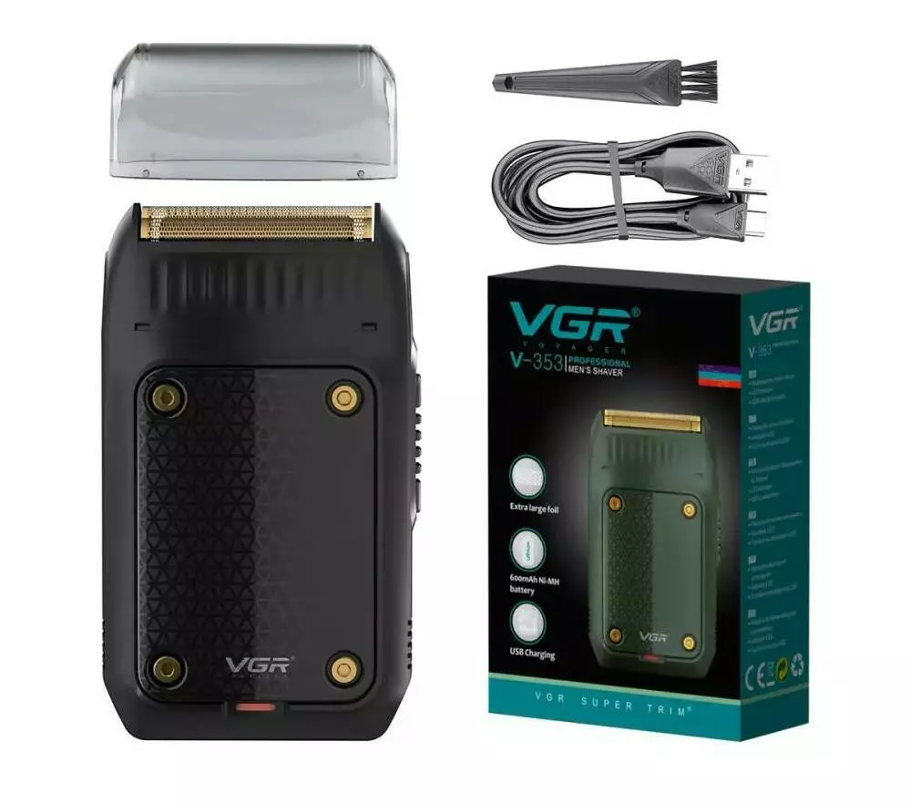 Електробритва шейвер VGR V-353 - універсальний прилад, що поєднує в собі два режими: гладке шейв-гоління сіткою і точний висувний триммер. Ідеальна для моделювання вусів, бороди, акуратного підстригання контурів. Корпус чорного кольору з LED-індикатором заряду надає сучасного та суворого вигляду. Вбудований потужний літій-іонний акумулятор забезпечує до 60 хвилин автономної роботи після повного заряджання. USB-підключення полегшує зарядку в поїздках або від пауербанку.