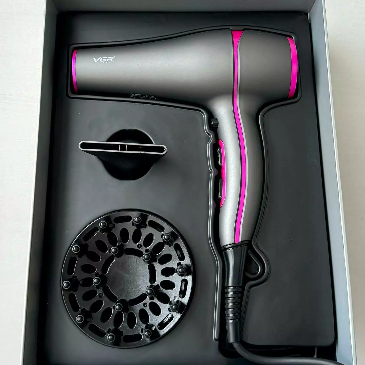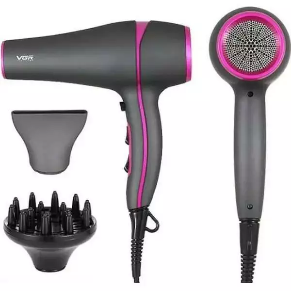 Фен для волос VGR V-402 с 2 насадками (Черно-розовый)