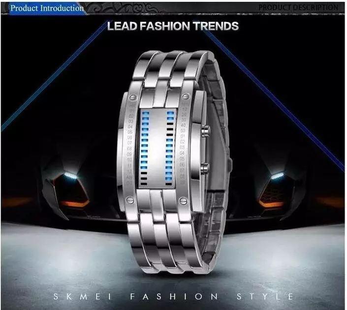 Годинник наручний Skmei — це стильний чоловічий аксесуар із сучасним дизайном, що поєднує футуристичний вигляд і лаконічну функціональність. Завдяки унікальному LED-дисплею та міцному металевому браслету, ця модель чудово підходить для щоденного носіння, підкреслюючи індивідуальність власника. Прямокутний корпус із легким вигином зручно сидить на руці, а темне дзеркальне скло надає годиннику особливого шарму. Модель оснащена функцією відображення часу і дати у бінарному форматі, що виглядає незвично й ефектно. Яскрава підсвітка дозволяє легко зчитувати показники в темряві. Завдяки водозахисту ви можете не турбуватись про бризки води під час повсякденного використання. Металевий браслет з нержавіючої сталі забезпечує надійність і довговічність. Годинник Skmei — це ідеальний вибір для тих, хто шукає щось оригінальне, сучасне та надійне.