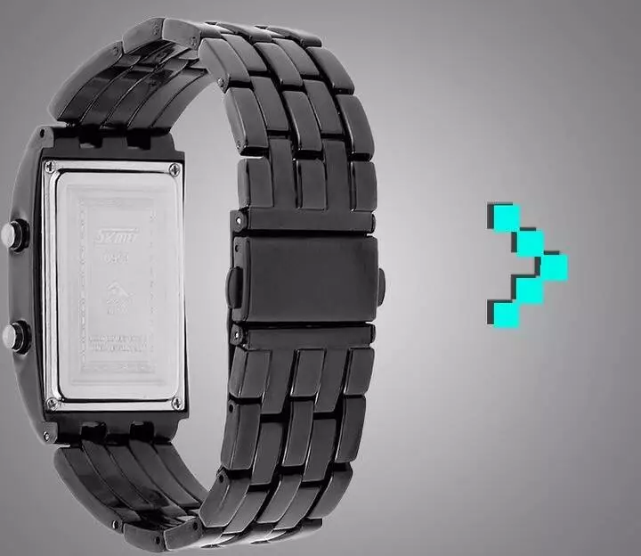 Годинник наручний Skmei — це стильний чоловічий аксесуар із сучасним дизайном, що поєднує футуристичний вигляд і лаконічну функціональність. Завдяки унікальному LED-дисплею та міцному металевому браслету, ця модель чудово підходить для щоденного носіння, підкреслюючи індивідуальність власника. Прямокутний корпус із легким вигином зручно сидить на руці, а темне дзеркальне скло надає годиннику особливого шарму. Модель оснащена функцією відображення часу і дати у бінарному форматі, що виглядає незвично й ефектно. Яскрава підсвітка дозволяє легко зчитувати показники в темряві. Завдяки водозахисту ви можете не турбуватись про бризки води під час повсякденного використання. Металевий браслет з нержавіючої сталі забезпечує надійність і довговічність. Годинник Skmei — це ідеальний вибір для тих, хто шукає щось оригінальне, сучасне та надійне.