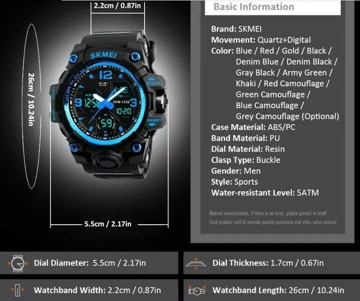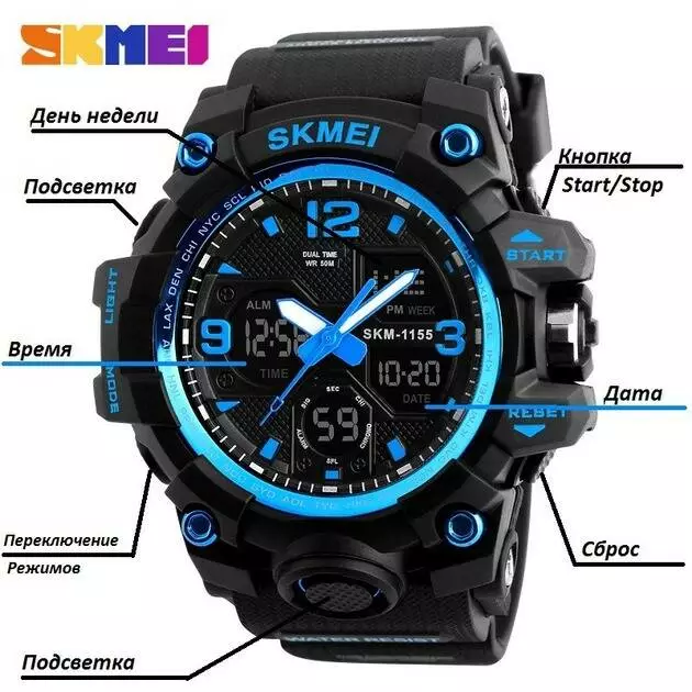- Циферблат: Змішаний (стрілочний і цифровий)