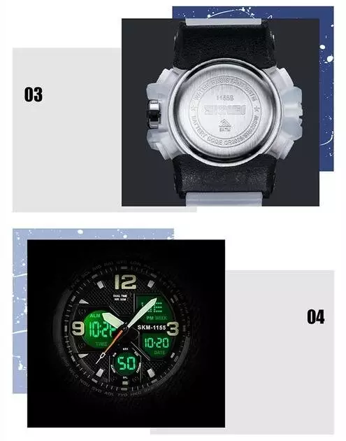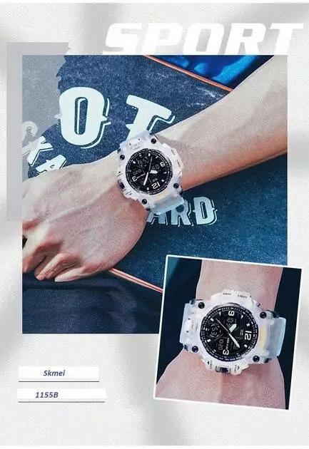 Годинник наручний Skmei 1155BWT — це стильний і багатофункціональний наручний годинник, який чудово підійде для активних чоловіків, що цінують зручність, надійність і сучасний дизайн. Модель поєднує класичний аналоговий механізм зі зручним цифровим дисплеєм, завдяки чому ви отримуєте одразу два формати відображення часу. Годинник має масивний пластиковий корпус у білому кольорі з чорним циферблатом і білий м’який ремінець із приємного на дотик полімерного матеріалу. Такий контраст виглядає стильно та неординарно, роблячи аксесуар яскравим акцентом у вашому образі. Незалежно від того, чи ви у місті, в спортзалі або на природі — Skmei 1155BWT виглядає доречно та ефектно.