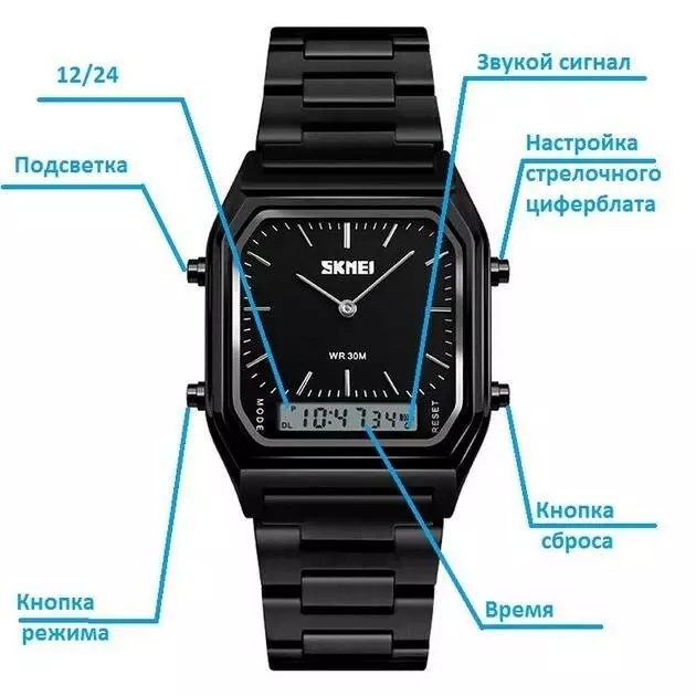 - Циферблат: Змішаний (стрілочний+цифровий)