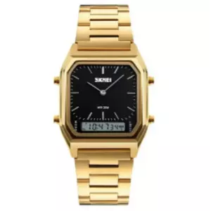 Годинник наручний Skmei - це стильний чоловічий аксесуар, що поєднує сучасний дизайн, функціональність і надійність. Короткий корпус і продумані деталі дозволяють гармонійно поєднувати модель як з повсякденним одягом, так і з діловим костюмом. Міцний браслет з надійною застібкою забезпечує комфорт та довговічність. Комбінована індикація зі стрілками та електронним дисплеєм доповнюється набором корисних функцій: відображення дати, дня тижня, місяця, секундомір, будильник, підсвічування, другий часовий пояс та вибір 12/24-годинного формату. Точний кварцовий механізм гарантує стабільну роботу, а захист від бризок робить годинник зручним для щоденного використання. Це ідеальний вибір для чоловіків, які цінують стиль, комфорт та функціональність в одному аксесуарі.