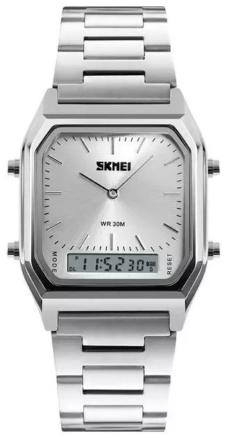 Годинник наручний Skmei - це стильний чоловічий аксесуар, що поєднує сучасний дизайн, функціональність і надійність. Короткий корпус і продумані деталі дозволяють гармонійно поєднувати модель як з повсякденним одягом, так і з діловим костюмом. Міцний браслет з надійною застібкою забезпечує комфорт та довговічність. Комбінована індикація зі стрілками та електронним дисплеєм доповнюється набором корисних функцій: відображення дати, дня тижня, місяця, секундомір, будильник, підсвічування, другий часовий пояс та вибір 12/24-годинного формату. Точний кварцовий механізм гарантує стабільну роботу, а захист від бризок робить годинник зручним для щоденного використання. Це ідеальний вибір для чоловіків, які цінують стиль, комфорт та функціональність в одному аксесуарі.