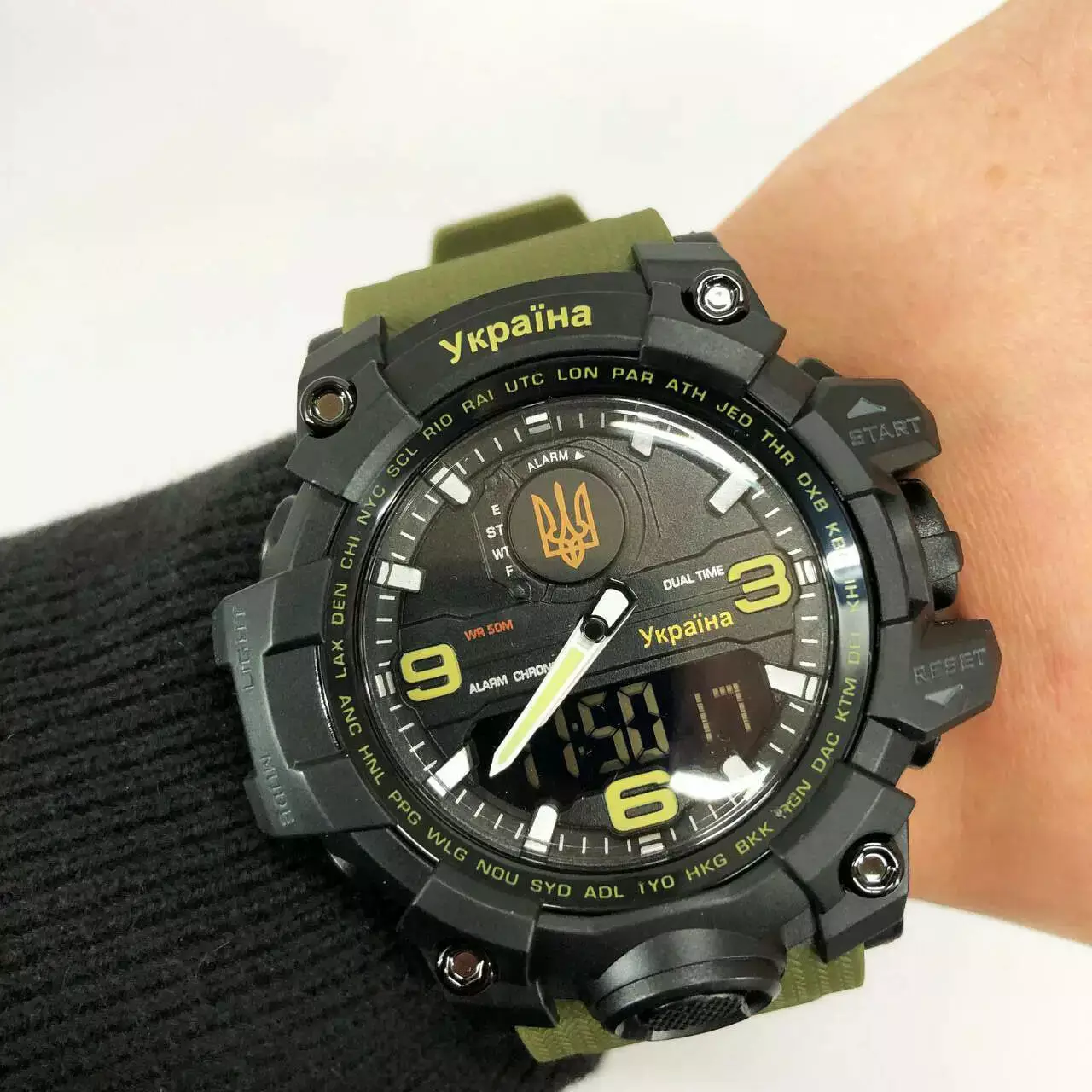 Годинник наручний Skmei 1586AG Ukraine - це стильний чоловічий аксесуар, що поєднує в собі класичний дизайн із сучасною функціональністю. Цей годинник ідеально підходить для чоловіків, які цінують точність і зручність у використанні. Підійде як для повсякденного використання, так і для ділових зустрічей, підкреслюючи індивідуальний стиль власника. Виготовлений з високоякісного пластику та нержавіючої сталі, що забезпечує захист від ударів і подряпин. Годинник водостійкий ви зможете без остраху носити їх під час плавання або дощу. Включає хронограф, будильник, таймер, світловий індикатор та дату - все, що потрібно для активного способу життя. Ремінець регульований та легкий, ідеально підходить для щоденного використання та спортивних тренувань.