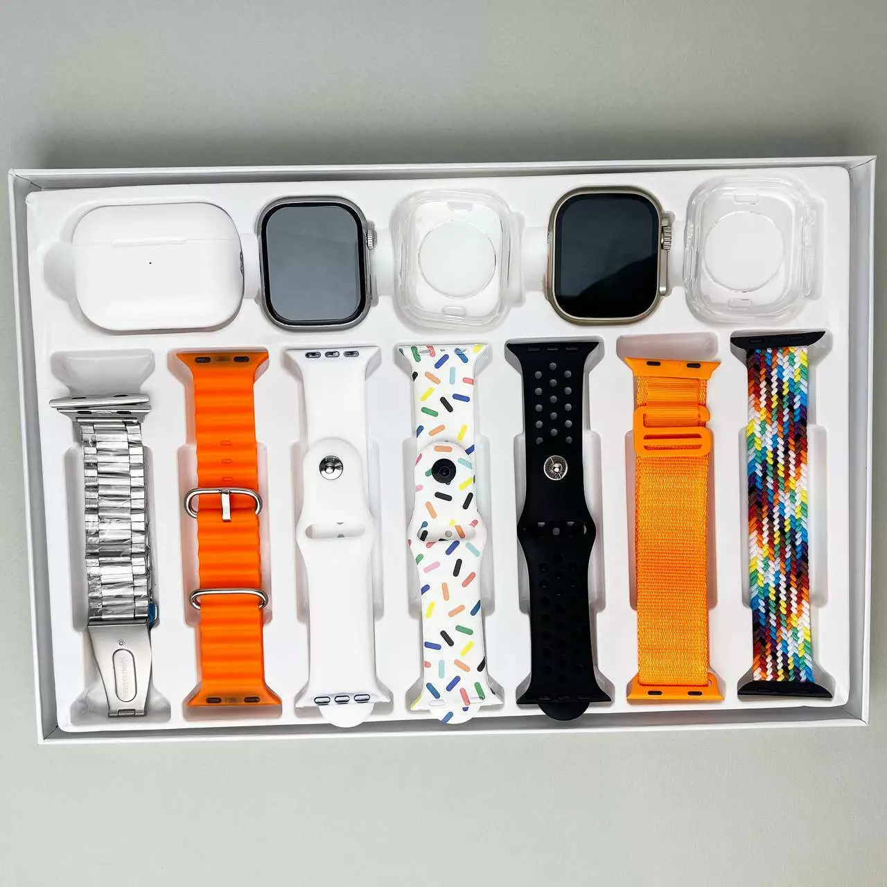 Комплект i60 - Watch Ultra 2 / Smart Watch 9 / Air Pro 2 / 7 ремешков / 2 защитных чехла (Белый)