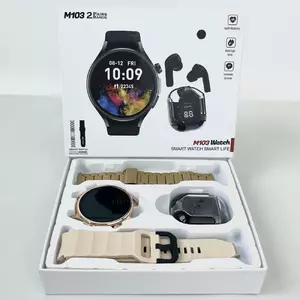 Комплект M103 (Watch + Ultra Pro) - це поєднання двох сучасних гаджетів, які створюють ідеальну технологічну пару для щоденного використання. Цей комплект розроблений для тих, хто цінує функціональність, стиль і зручність у кожній деталі. До нього входить розумний годинник, який стане вашим особистим помічником у контролі здоров'я, активності та спілкуванні. А також бездротові навушники Ultra Pro - для якісного звучання улюбленої музики, дзвінків та подкастів без обмежень. Стильний дизайн і сучасні технології цього комплекту допоможуть вам завжди залишатися на зв’язку та в ритмі життя.