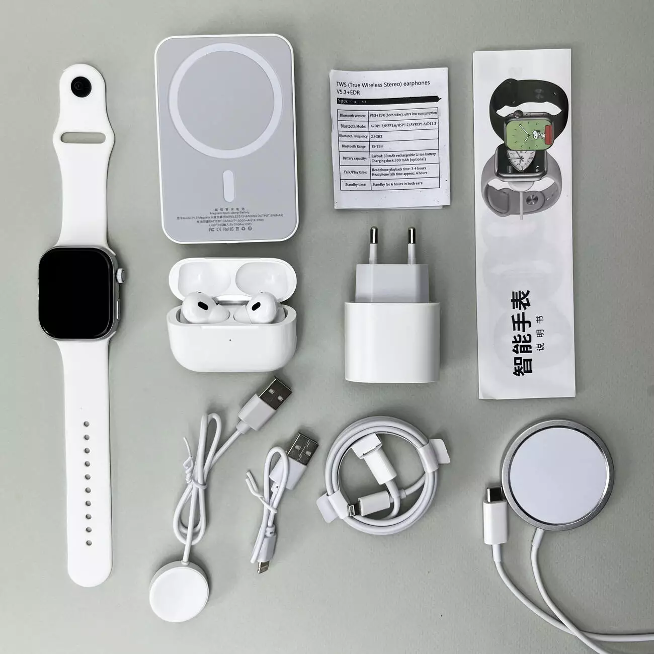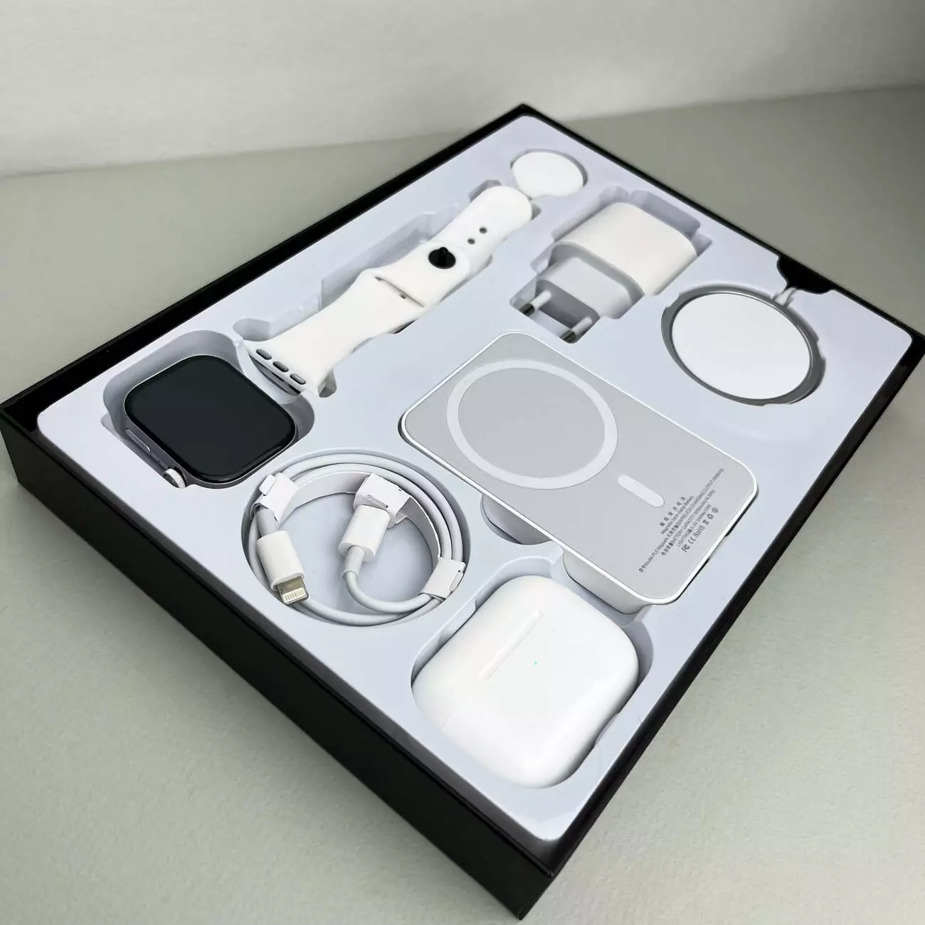 Комплект Megabox 6в1 - Watch 9 / Air Pro 2 / Battary Pack / MagSafe / 20W Type-С / Кабель 3х / Ремешок (Белый)