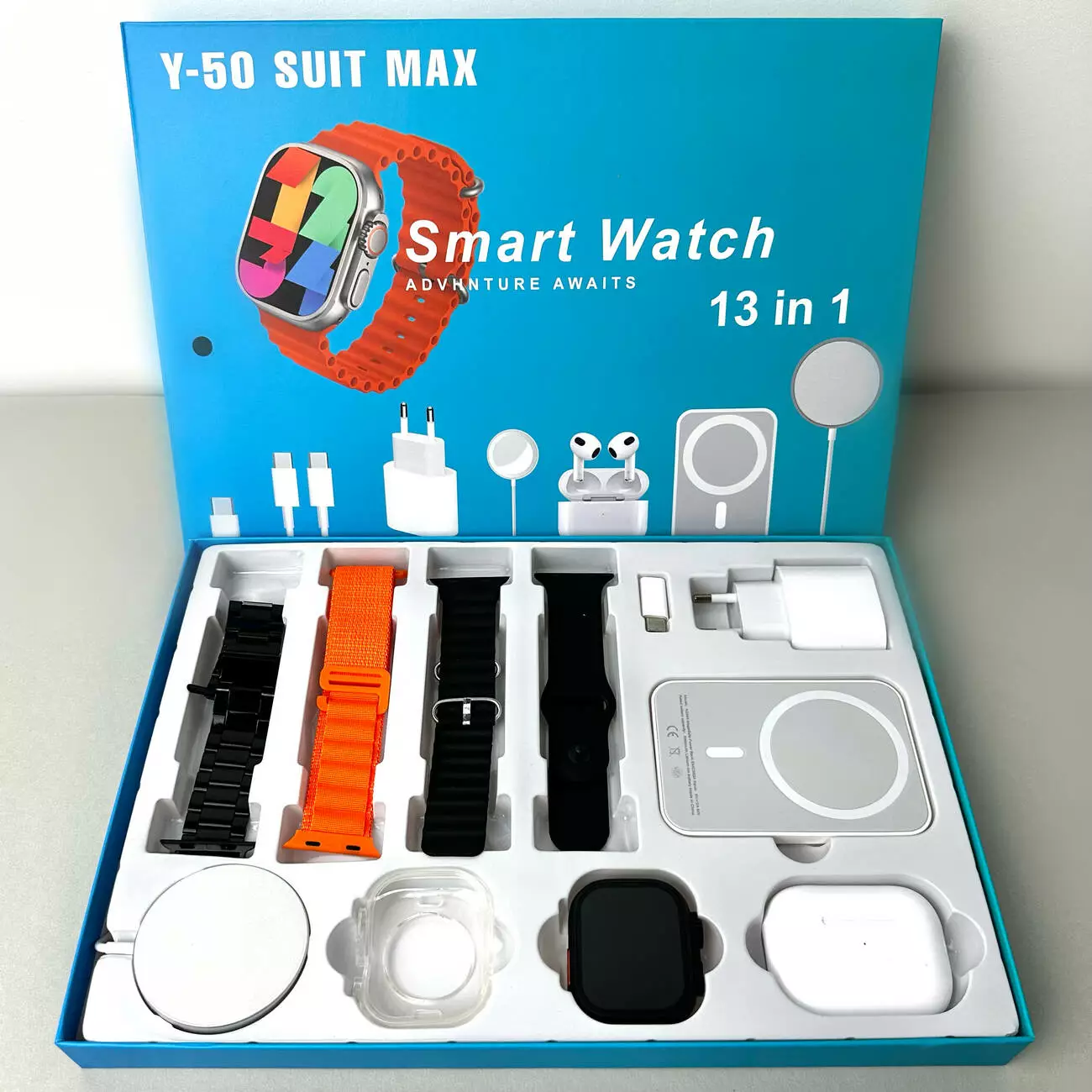 Комплект Y50 Ultra 13в1 - Watch Ultra / Air Pro 2 / Power Bank / MagSafe / 4 ремешка / защитный чехол (Черный)