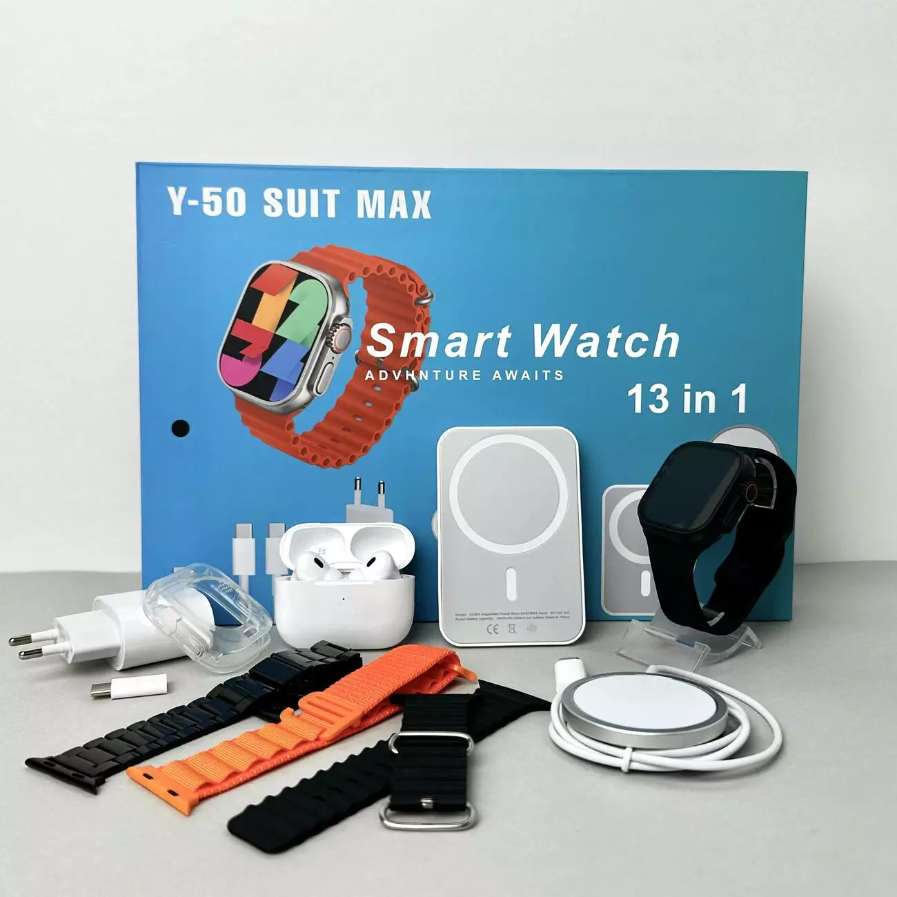 Комплект Y50 Ultra 13в1 - Watch Ultra / Air Pro 2 / Power Bank / MagSafe / 4 ремінці / захисний чохол (Чорний)