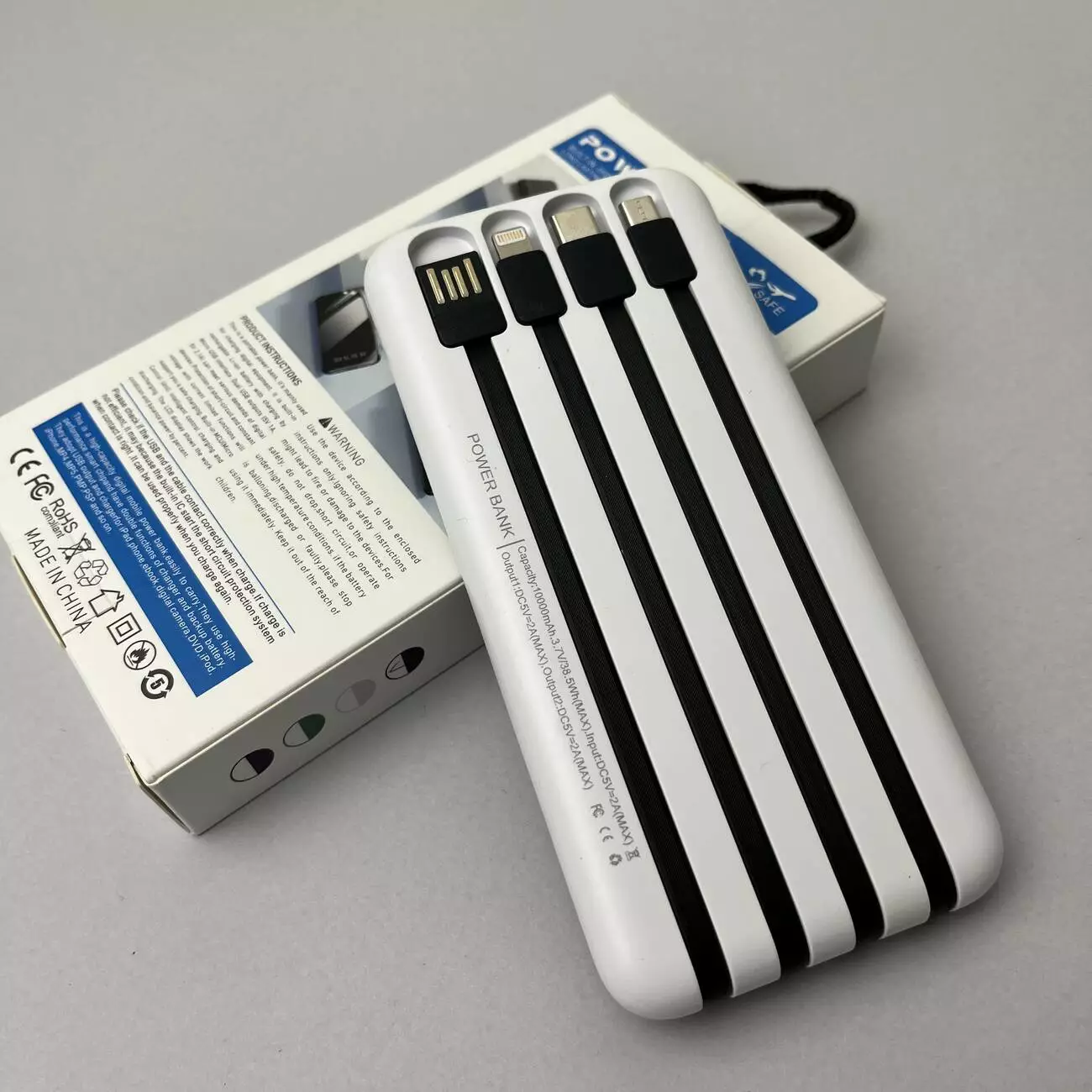 Power Bank Fast Charge с кабелем USB+Micro+Type-C+Lightning (10000mAh) Белый