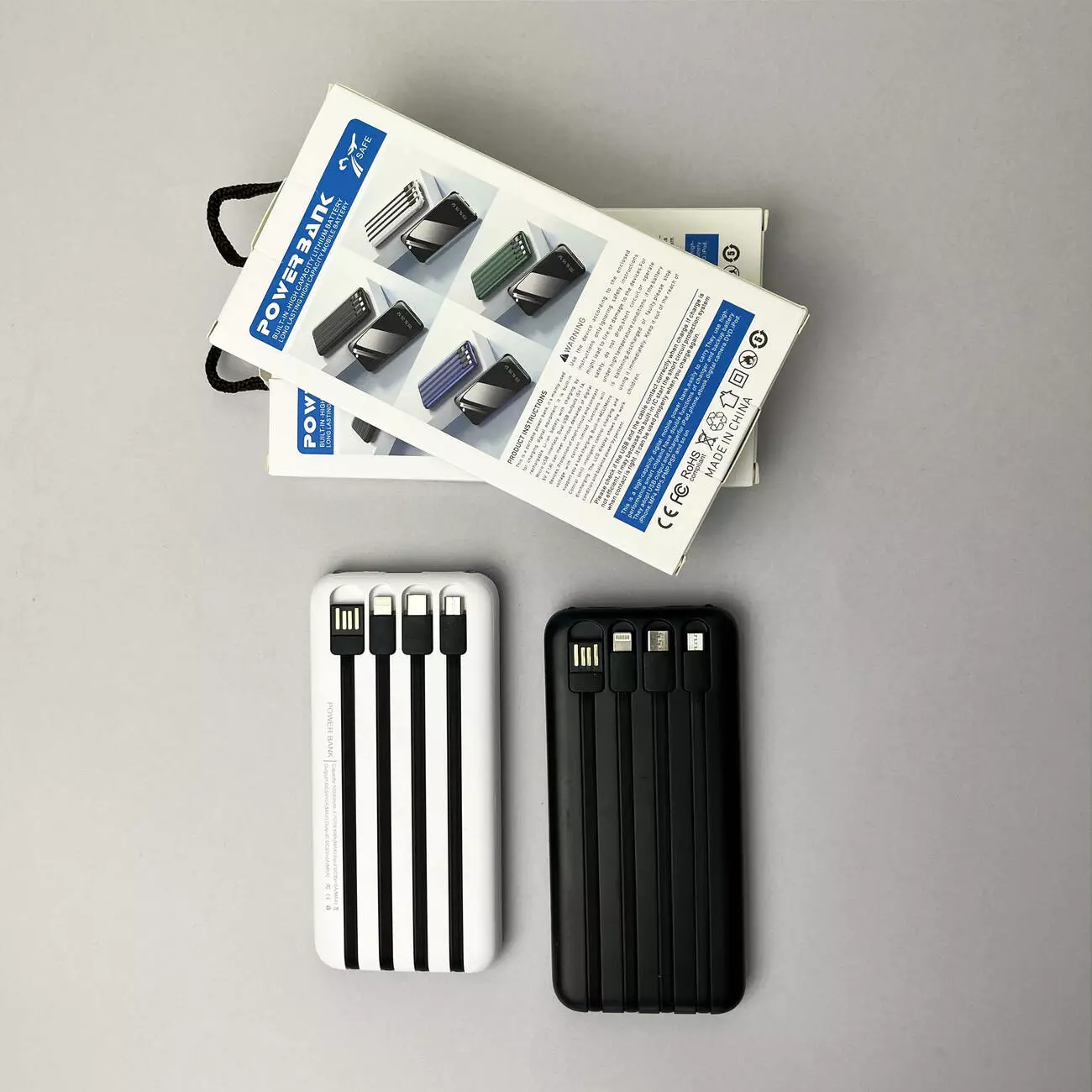 Power Bank Fast Charge з кабелем USB+Micro+Type-C+Lightning (10000mAh) - Портативний зарядний пристрій Power Bank Fast Charge (10000 mAh) є відмінним компактним варіантом портативного зарядного пристрою. Має 4 різних кабелі на вихід, ліхтарик і світлодіодні індикатори для відстеження рівня заряду пристрою. Цей Power Bank поєднує в собі швидкість і надійність. Можливість під'єднати 4 гаджети одночасно, що дуже прискорює процес заряджання. LED індикатор, що відображає рівень заряду акумулятора. Відмінний варіант для подорожей або на повсякденне життя.