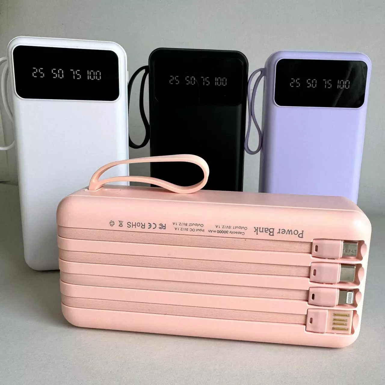 Power Bank Intelligent Fast з кабелем USB+Micro+Type-C+Lightning (30000mAh) - це високоємний портативний зарядний пристрій, який дозволить вам залишатися на зв'язку в будь-який час. Завдяки ємності 30000mAh він здатний багаторазово заряджати ваші гаджети, а вбудовані USB, Micro-USB, Type-C і Lightning-кабелі забезпечують універсальну сумісність без необхідності носити додаткові дроти для використання.Компактний та ергономічний дизайн робить його ідеальним рішенням як для подорожей, так і для повсякденного використання.
