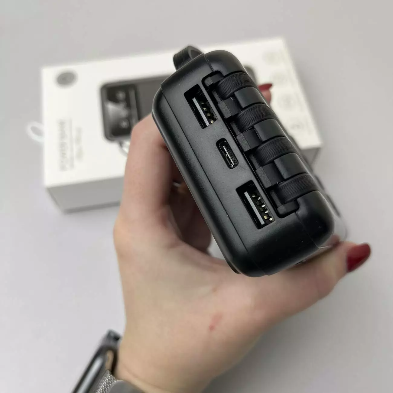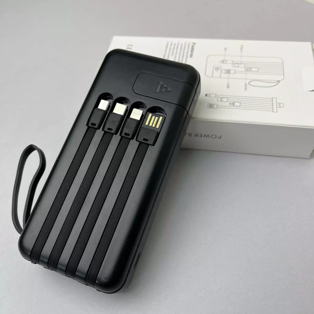 Power Bank Super з кабелем USB+Micro+Type-C+Lightning (20000mAh) - Надійний і потужний Power Bank Super стане незамінним джерелом енергії для ваших пристроїв у будь-який момент і в будь-якому місці. Завдяки ергономічному дизайну, швидкій зарядці та універсальним портам, він ідеально підходить для смартфонів, планшетів та інших гаджетів. Компактний розмір дозволяє зручно носити його з собою, а висока ємність гарантує тривалу роботу без необхідності частої підзарядки. Це ідеальний вибір для активного життя і подорожей.