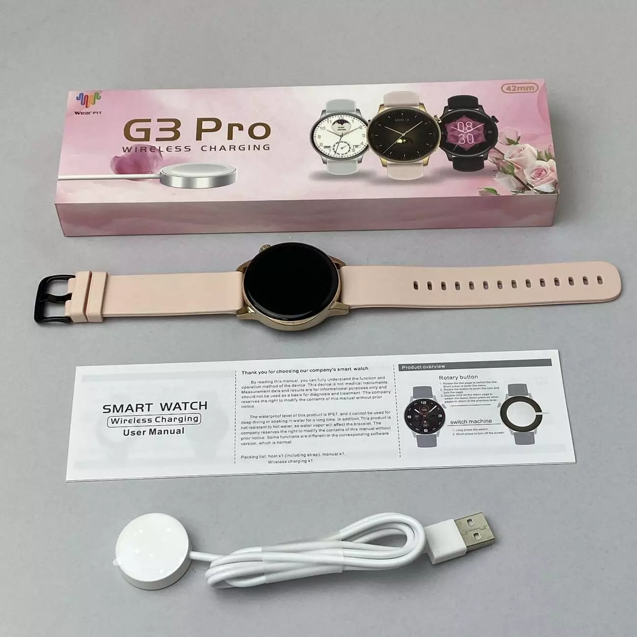 Розумний годинник Smart Watch G3 Pro - має витончений, елегантний дизайн. Цей гаджет стане для вас не тільки помічником, але й стильним аксесуаром. G3 Pro підтримує повідомлення майже з усіх сучасних месседжерів, а ще з нього можливо робити виклики або відповідати на дзвінки не достаючи телефона. З цим гаджетом вам буде легко контролювати своє здоров'я, бо в ньому є такі функції: пульсометр, шагометр, моніторинг сну, кільця активності і ще багато інших.
