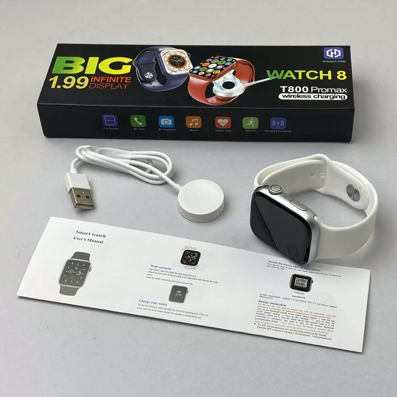 Розумний годинник Smart Watch 8 Т800 Pro Max - Відмінний сучасний розумний годинник, оснащений великим яскравим екраном для комфортного використання. Вони допоможуть вам відстежувати своє здоров'я. Включають крокомір, кільця активності, пульсометр та інші. Також сповіщення про важливі події на вашому смартфоні та голосовий асистент. Стильний дизайн робить їх чудовим аксесуаром для активних користувачів. Дану модель розумного годинника ви можете придбати у нас оптом або по дропшиппінгу.