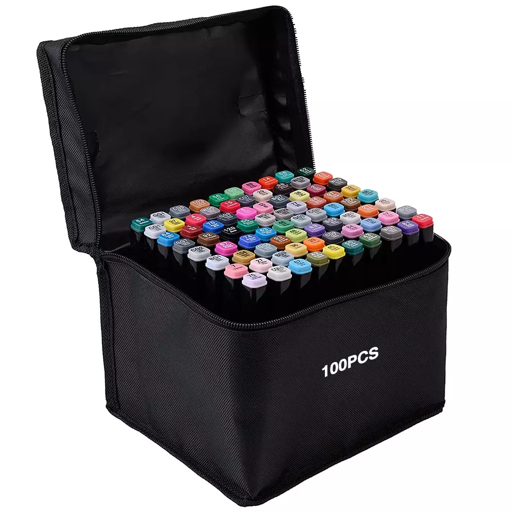 Набір скетч‑маркeрів — це універсальний інструмент для малювання й скетчингу, призначений як для початківців, так і професійних художників. Кожен маркер має два наконечники — тонкий для контурів і деталізації та скошений для закрашування великих площ. Завдяки спиртовій основі чорнила швидко сохнуть, дають насичені кольори та забезпечують плавне змішування відтінків. Упаковка в тканинний кейс на блискавці робить зберігання й транспортування максимально зручним.