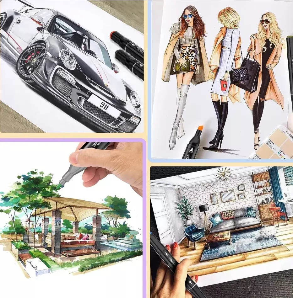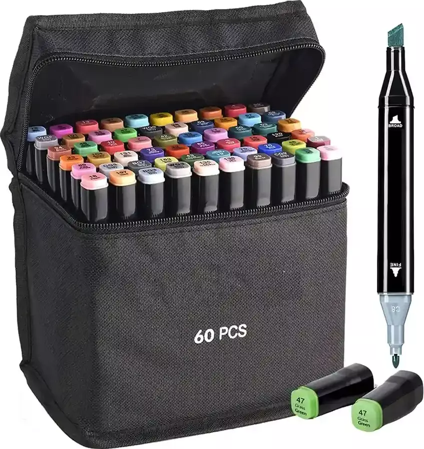 Набір скетч‑маркeрів — це універсальний інструмент для малювання й скетчингу, призначений як для початківців, так і професійних художників. Кожен маркер має два наконечники — тонкий для контурів і деталізації та скошений для закрашування великих площ. Завдяки спиртовій основі чорнила швидко сохнуть, дають насичені кольори та забезпечують плавне змішування відтінків. Упаковка в тканинний кейс на блискавці робить зберігання й транспортування максимально зручним.