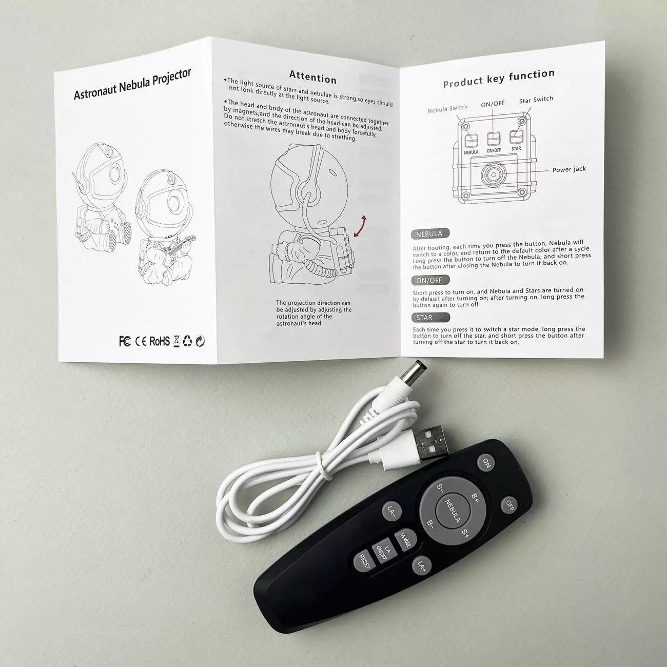 Світильник-проектор Астронавт Nebula RGB - світильник має безліч режимів колірного зображення космічного неба, що дає змогу створювати неповторну атмосферу в будь-якому приміщенні. Зображення-проекція виходить дуже чітким і реалістичним, прекрасно передаються всі деталі і яскравість картинки. Фігурка з регульованою головою дає змогу змінювати її положення і напрямок проекції, що робить використання ще зручнішим. Управління нічником інтуїтивно зрозуміле і зручне, а наявність пульта дистанційного керування робить експлуатацію ще простішою. Стильний дизайн світильника легко впишеться в будь-який інтер'єр. Це ідеальне поєднання функціональності, стилю і сучасних технологій, яке стане справжньою окрасою вашого будинку.