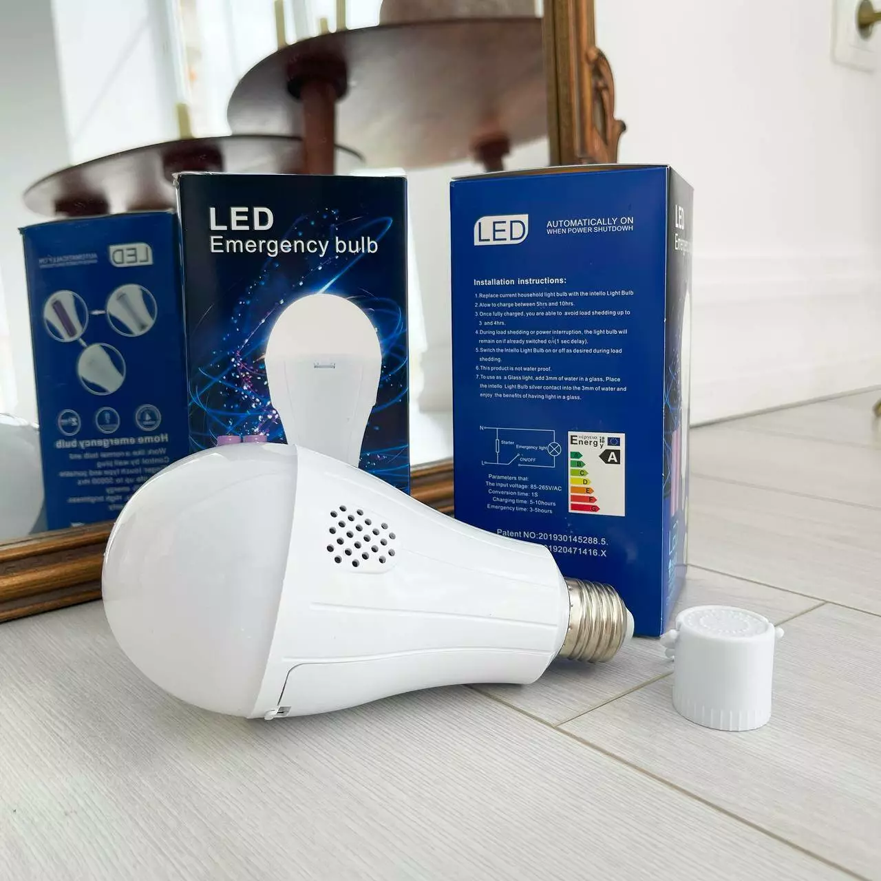 Світлодіодна лампа LED E27 20W з акумулятором - це інноваційний продукт, що дозволяє використовувати світлодіодну лампочку як звичайну, так і як аварійне джерело світла. Лампочка має змінні акумулятори, що заряджаються від мережі, коли лампочка працює. Після вимкнення світла лампа перемикається з режиму роботи від мережі на акумулятор. Повного заряду акумулятора вистачає приблизно до 3-5 годин без мережі. Якщо потрібно вимкнути світло в кімнаті, потрібно просто вимкнути світло з вимикача (як зазвичай), і лампа вимикається. Коли з'являється світло, лампа переходить у режим роботи від мережі та заряджає акумулятор для подальшого використання. Це сучасне та практичне рішення для освітлення будинку, офісу чи дачі.