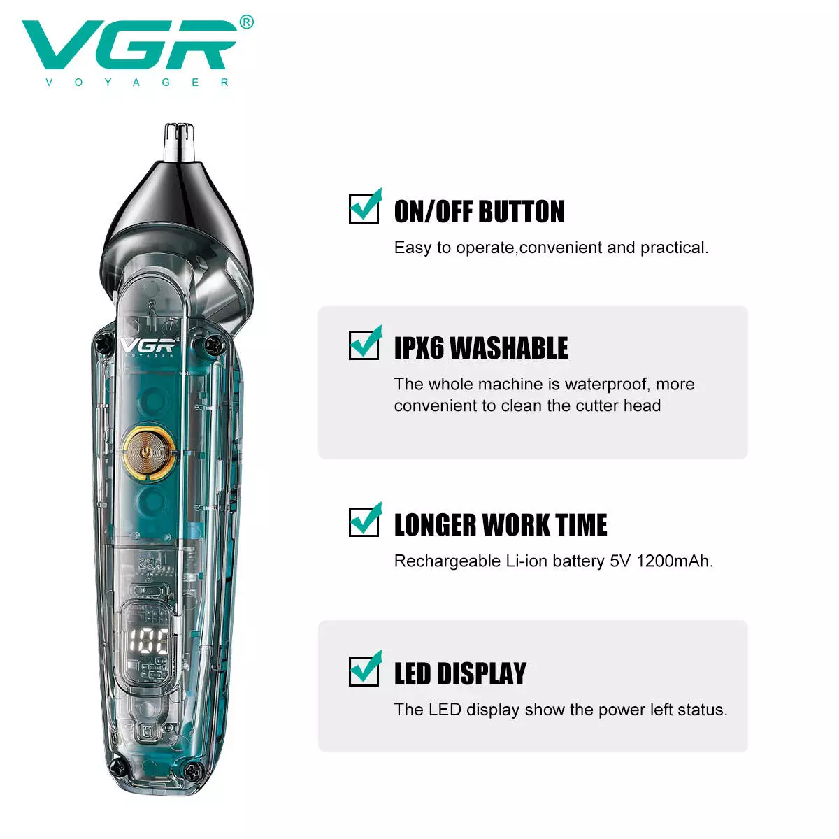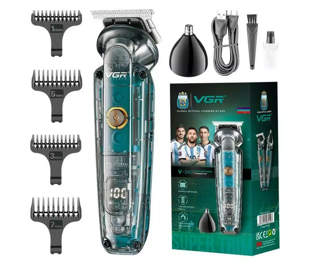 Тример VGR V-949 — це універсальний і продуманий інструмент для догляду за волоссям і вусами, який об'єднує функції тримера та насадки для носа в одному компактному корпусі. Якісні леза зі сталі забезпечують рівний і точний зріз, а водозахист IPX6 дозволяє швидко промивати пристрій без побоювання пошкодження. Вбудований LED-дисплей показує рівень заряду та швидкість, забезпечуючи зручний контроль у будь-яких умовах.