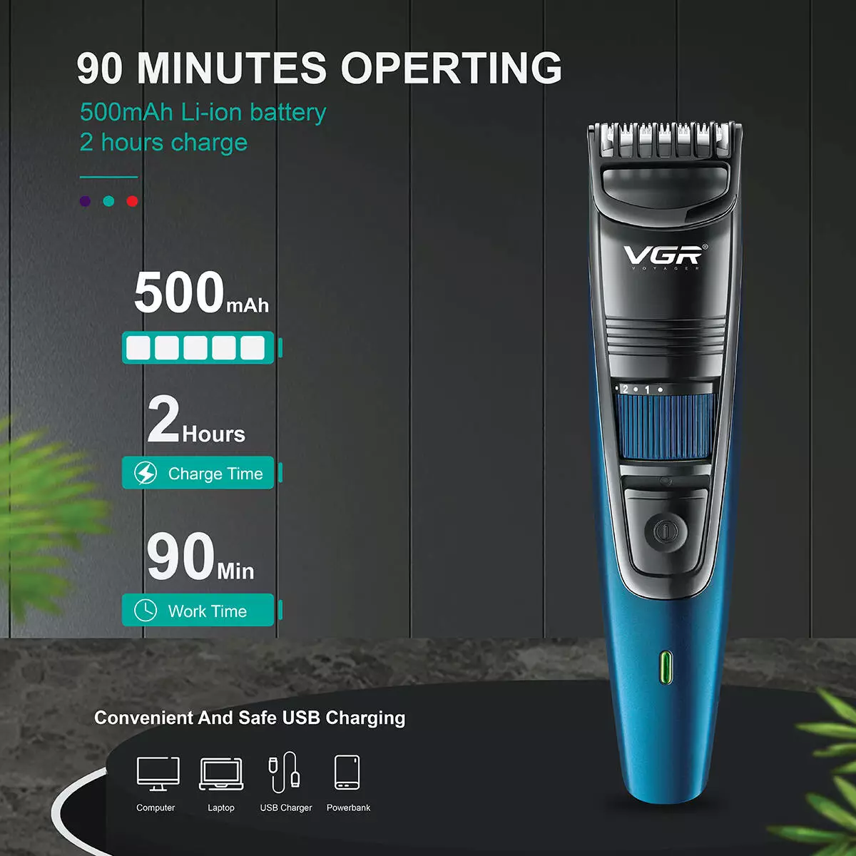 Тример VGR V-052 — універсальний пристрій для стрижки волосся та бороди, що поєднує функціональність, комфорт і надійність. Ергономічний дизайн, гострі леза з нержавіючої сталі та зручна насадка з регулятором довжини забезпечують точну і чисту стрижку. Потужний акумулятор гарантує тривалу автономну роботу, а зарядка через USB робить тример зручним у використанні вдома чи в подорожах. LED-індикатор показує стан заряду, дозволяючи завжди контролювати роботу пристрою.