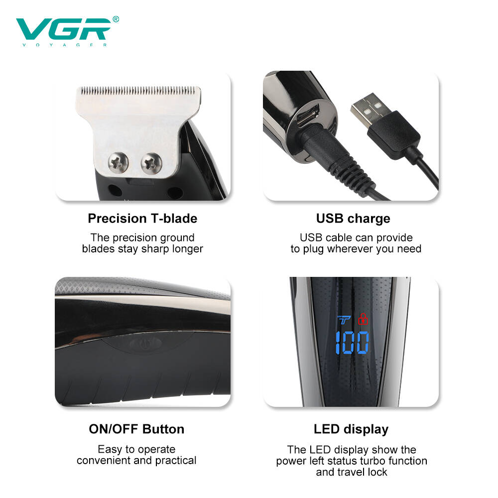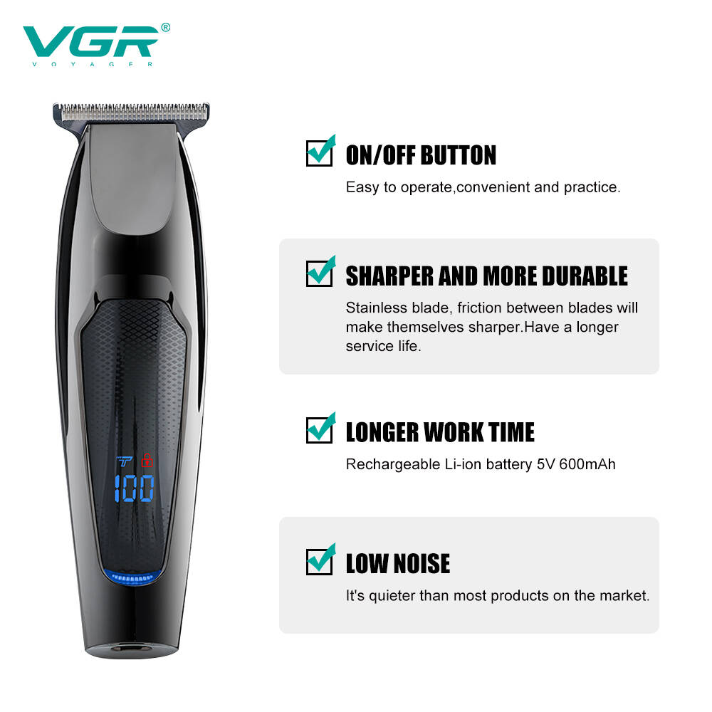 Тример VGR V-070 — це сучасний і зручний інструмент для догляду за волоссям і бородою, який забезпечує чисту, точну стрижку. Дизайн передбачає ергономічну ручку й компактний корпус, що робить використання комфортним. Якісне лезо з нержавіючої сталі, LED-дисплей із індикацією заряду та турбо-режим додають практичності й контролю. Зарядка через USB дає змогу підзаряджати пристрій у будь-якому місці.