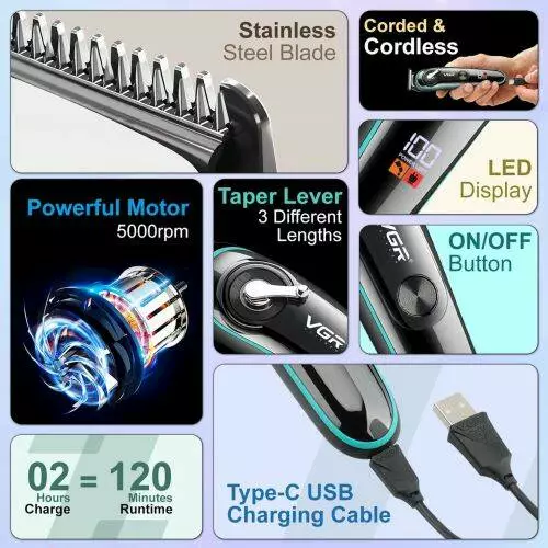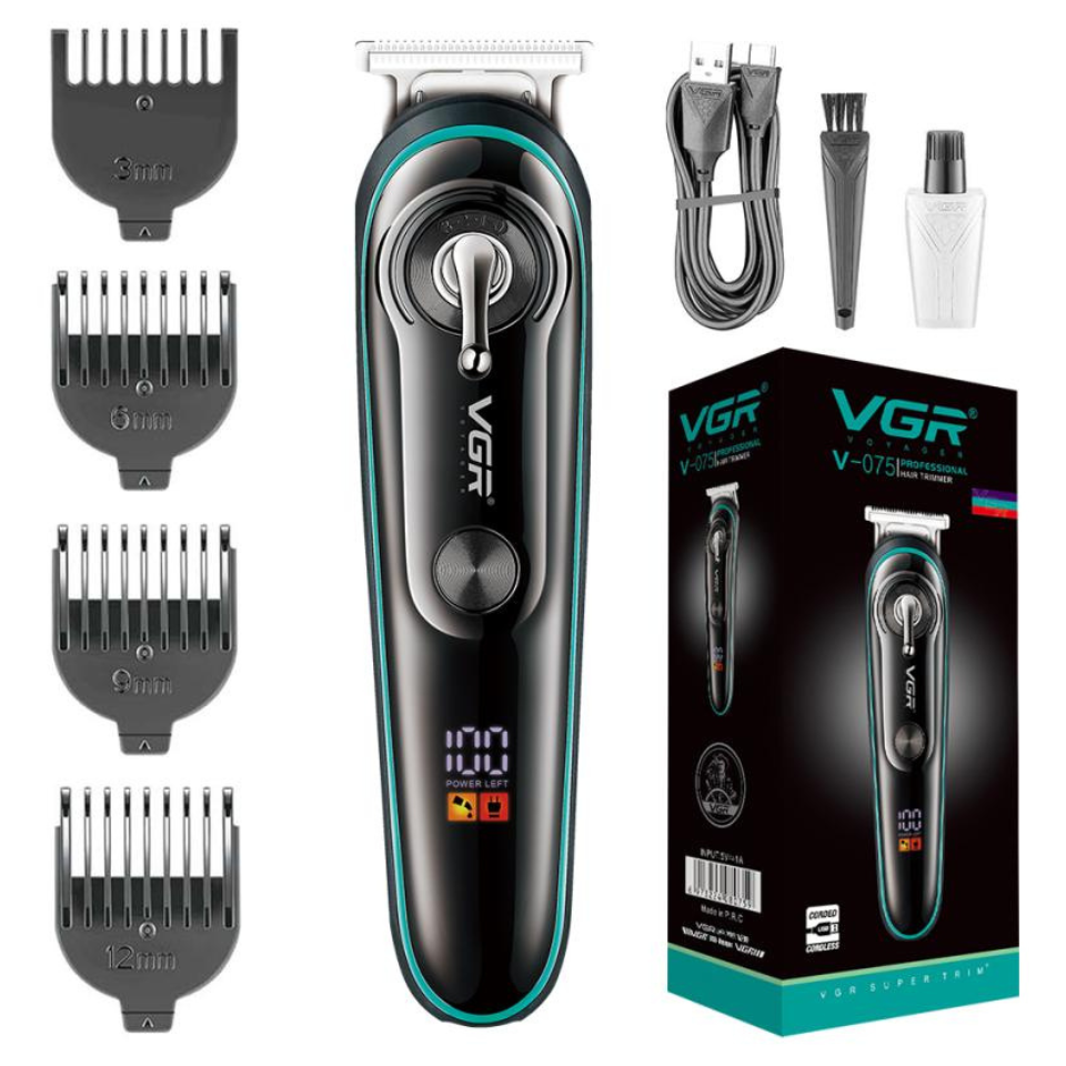 Тример VGR V-075 — сучасний інструмент для догляду за волоссям і бородою, який поєднує функціональність і зручність у використанні. Ергономічний дизайн забезпечує комфорт під час стрижки, а гострі леза з нержавіючої сталі гарантують акуратний зріз без подразнень. Пристрій оснащений LED-дисплеєм, що відображає рівень заряду та режим роботи, а також має вбудований регулятор висоти зрізу, який дозволяє легко налаштовувати потрібну довжину. Потужний двигун і надійний акумулятор забезпечують до двох годин безперервної роботи, що робить тример зручним як для дому, так і для поїздок.